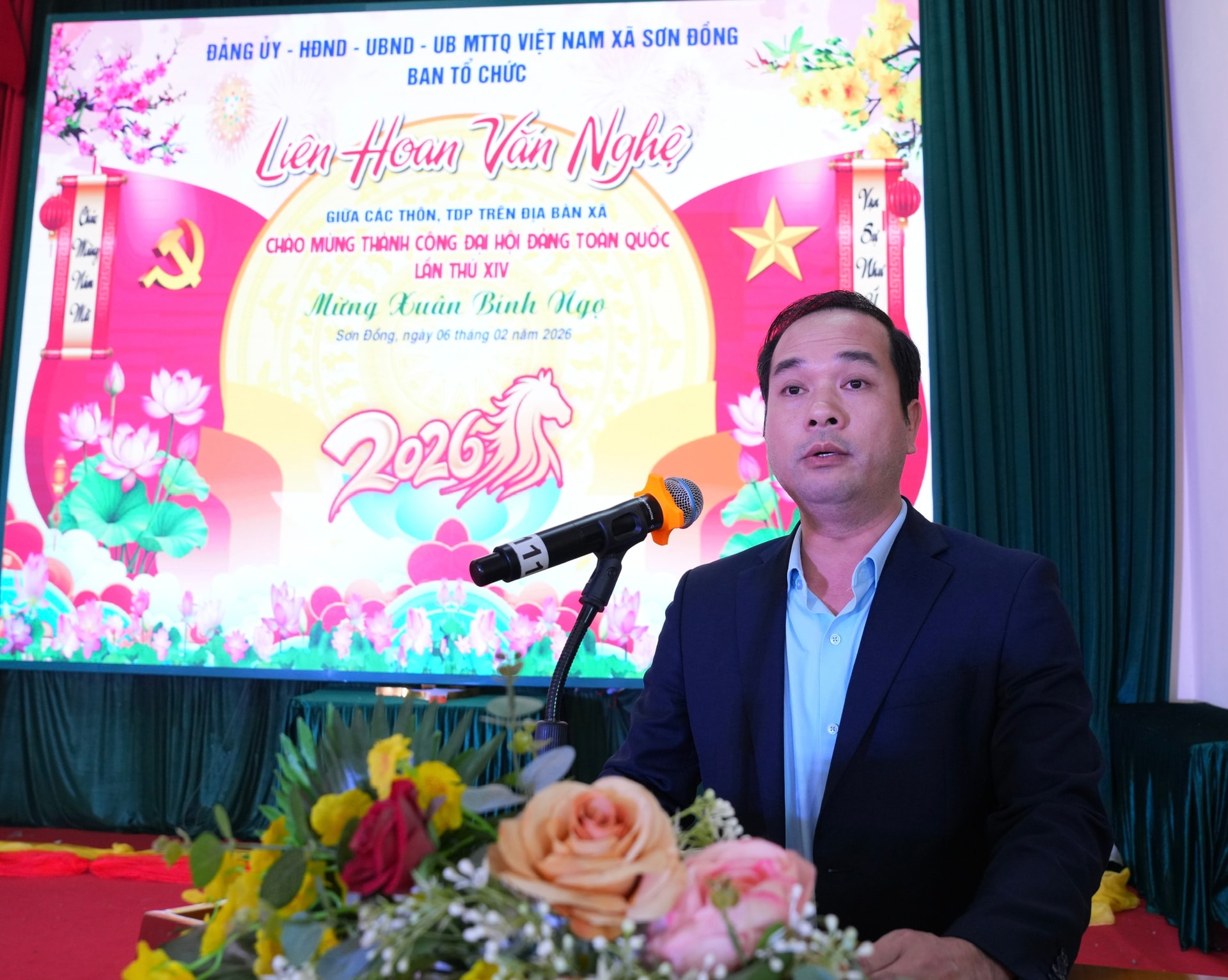 Phó Chủ tịch UBND xã Sơn Đồng Nguyễn Duy Cương khai mạc liên hoan. Ảnh: Thùy Duyên