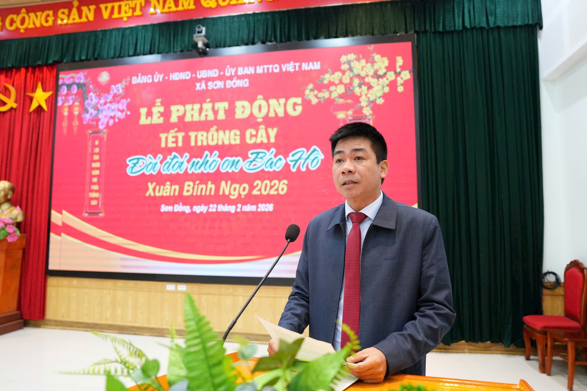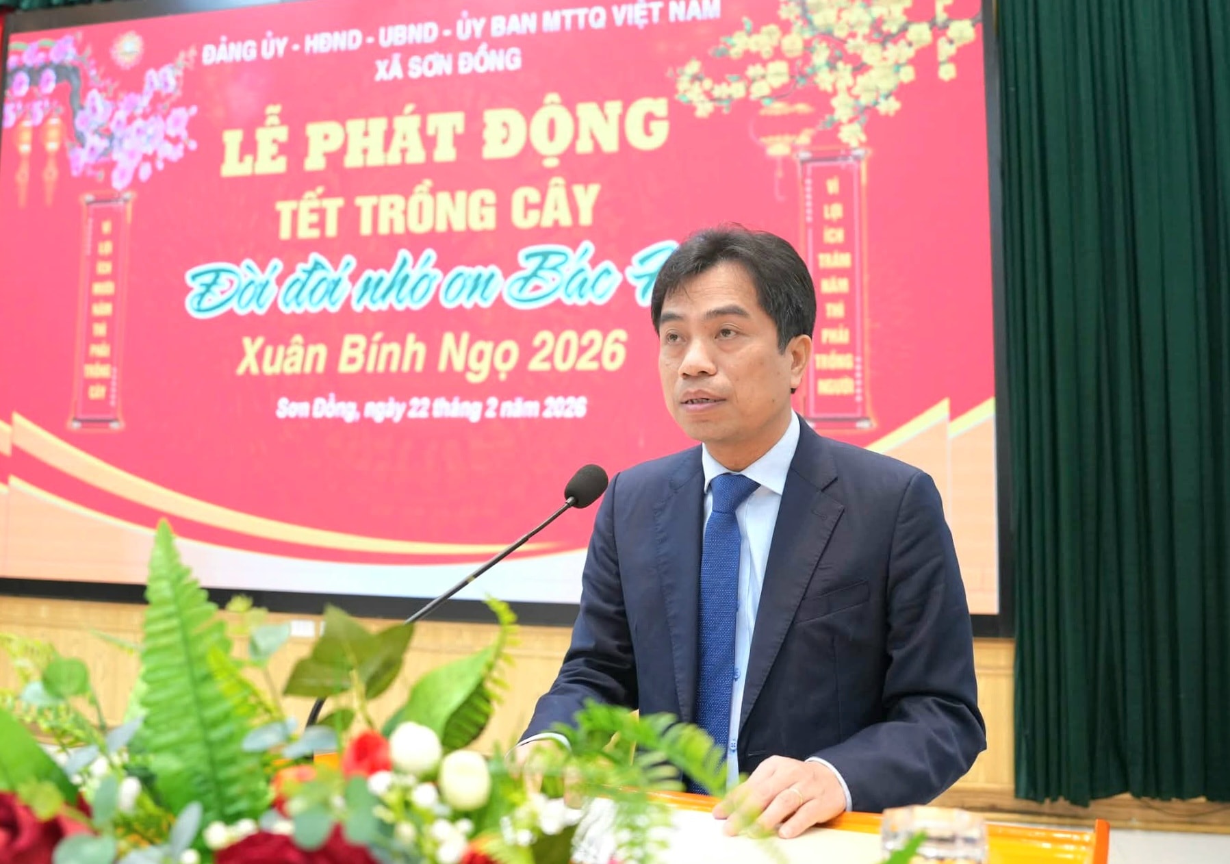 Thay mặt Đảng ủy, HĐND, UBND, Ủy ban MTTQ xã, Chủ tịch UBND xã Sơn Đồng kêu gọi toàn thể nhân dân, các phòng, ban, ngành, đoàn thể, các cơ quan, đơn vị trên địa bàn hưởng ứng tích cực tham gia phong trào trồng cây nhân dịp Xuân Bính Ngọ 2026.