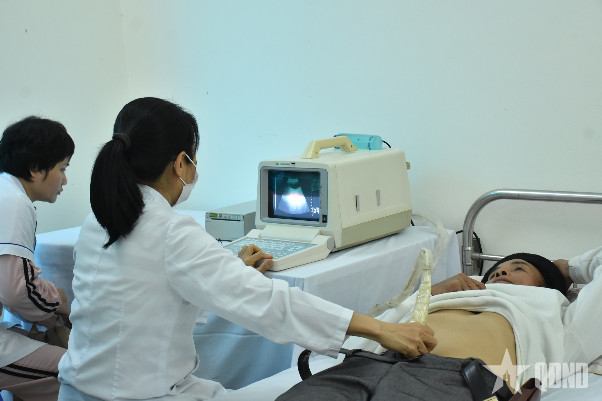 Các y, bác sĩ khám bệnh cho người dân.