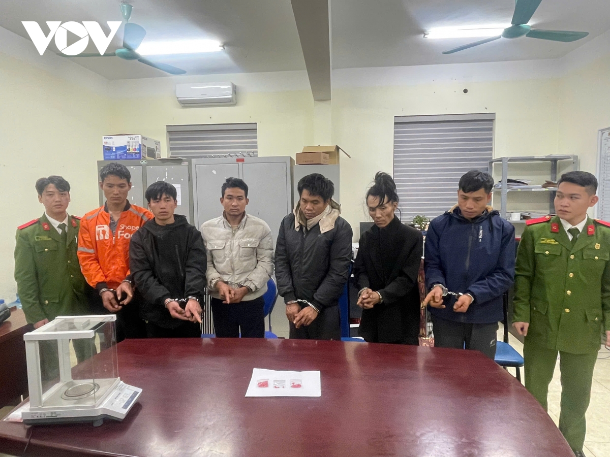 Các đối tượng bị bắt giữ gồm: Vì Văn Hỏa (SN1994, trú tại xã Chiềng Khoong); Tòng Văn Quang (SN1993, trú tại xã Sông Mã) và 4 đối tượng cùng trú tại xã Phiêng Cằm, tỉnh Sơn La là Thào A Chống (SN1996), Lò Văn Thi (SN1997), Lường Văn Thoáng (SN1996) và Lường Văn Thành (SN2000). Tang vật thu giữ gồm 135 viên ma túy tổng hợp và các vật chứng khác có liên quan.
