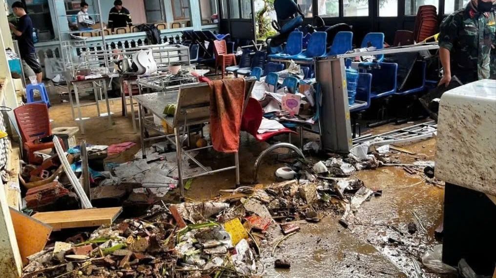 Clip nước lũ tràn vào Bệnh viện Đa khoa Thảo Nguyên ở tỉnh Sơn La