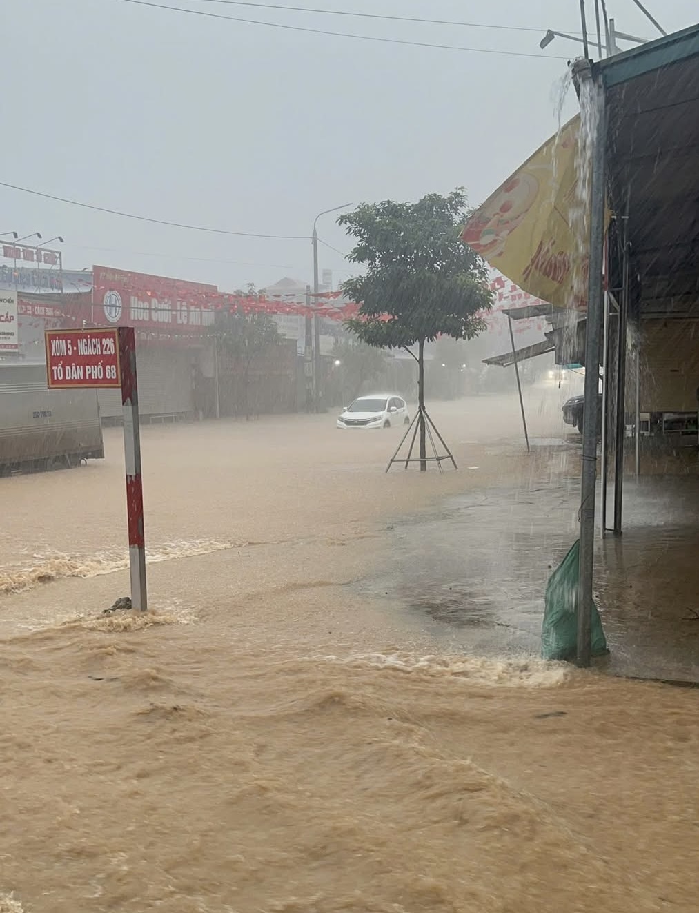 Nước ngập đường ở phường Vân Sơn (tỉnh Sơn La) khi ổ mưa dông quét tới