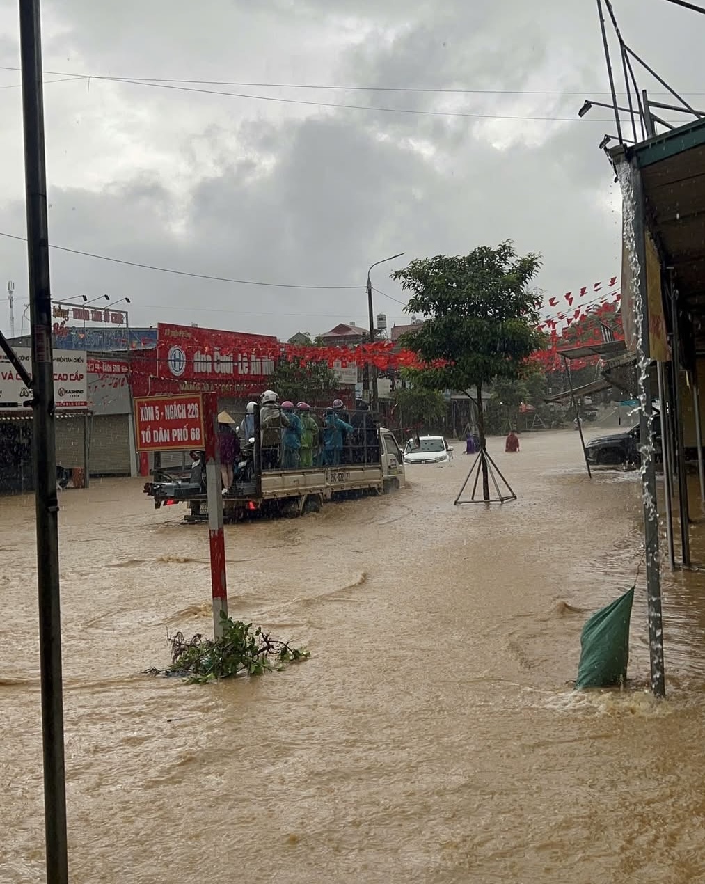 Cùng với đó, tuyến đường dẫn vào bệnh viện bị ngập sâu, có nơi nước chảy xiết, cuốn trôi nhiều đồ dùng, tài sản.