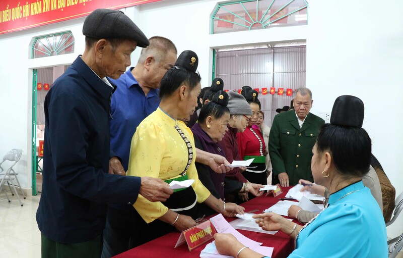 Không khí ngày bầu cử càng thêm sinh động khi nhiều cử tri mặc trang phục truyền thống của các dân tộc. Những bộ váy áo rực rỡ sắc màu đã góp phần tạo nên bức tranh đa dạng văn hóa trong ngày hội lớn của toàn dân.