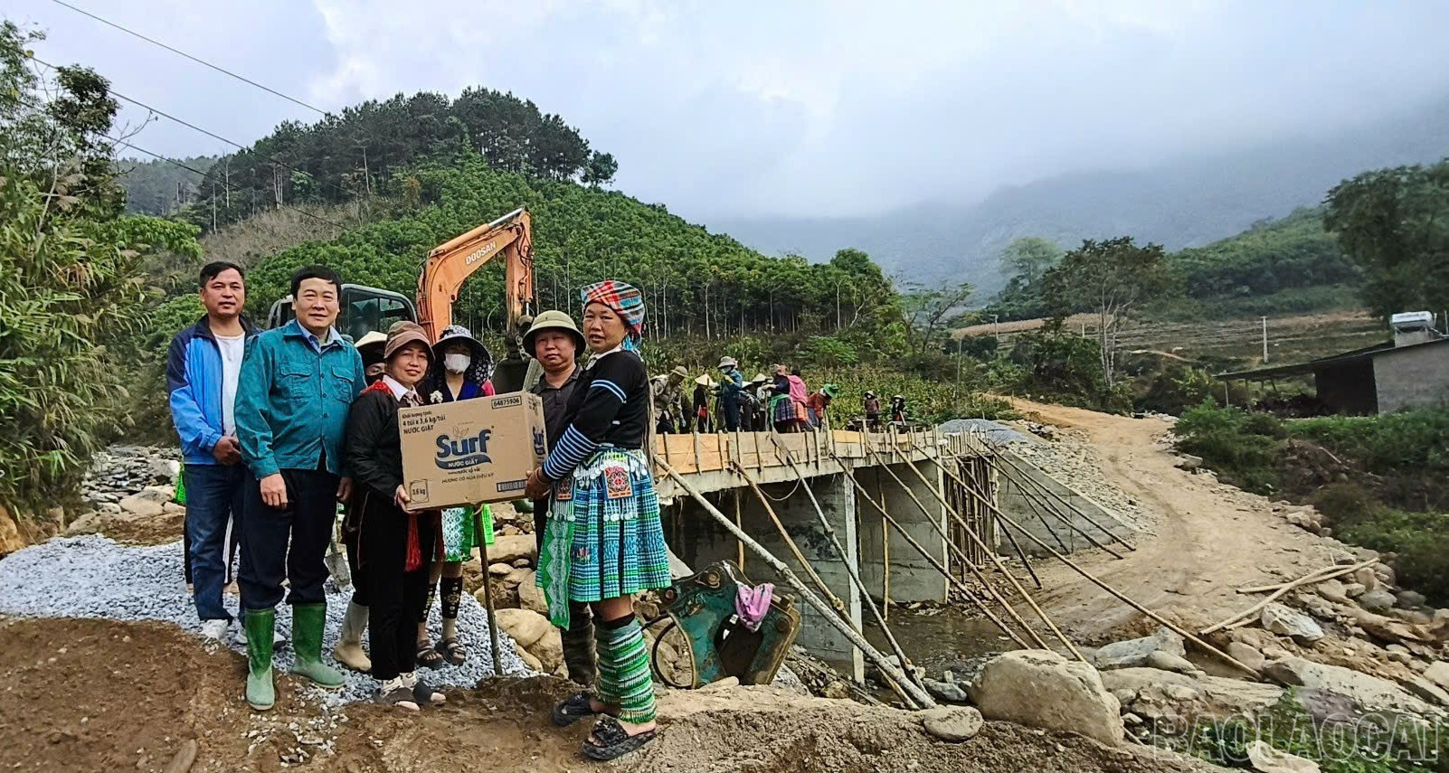 Ông Trịnh Xuân Thành - Bí thư Đảng ủy xã Sơn Lương, đã gặp gỡ, trao quà động viên người dân tham gia xây dựng cầu.
