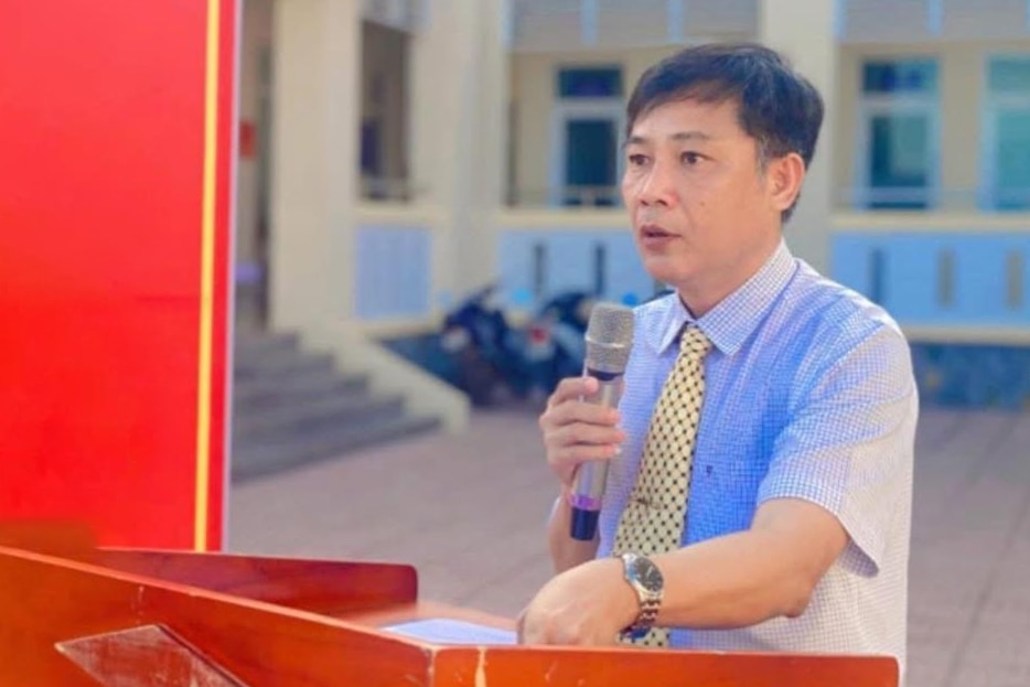 Đồng chí Huỳnh Quốc Thái, Phó Chủ tịch UBND xã phát biểu tại Lễ ra quân