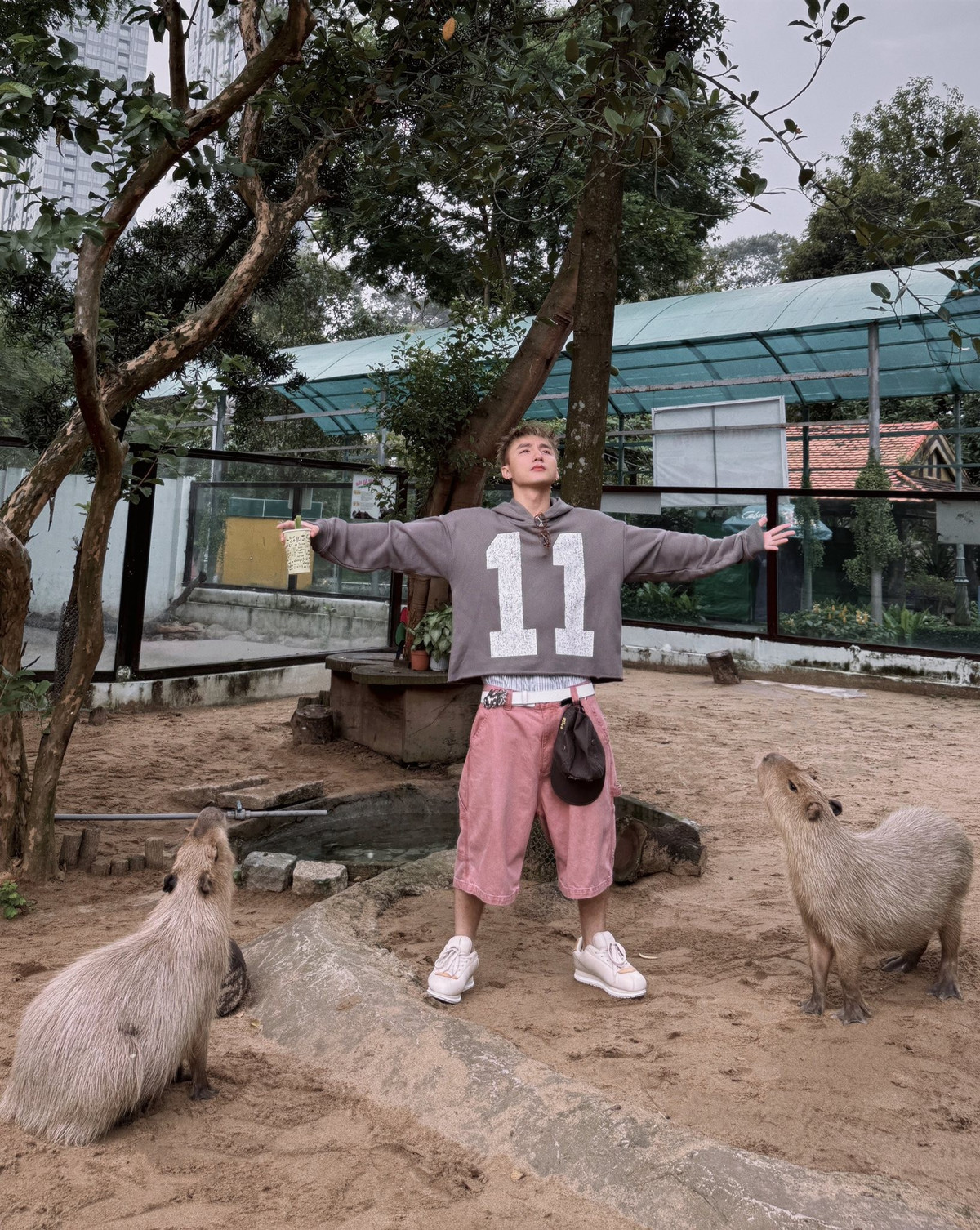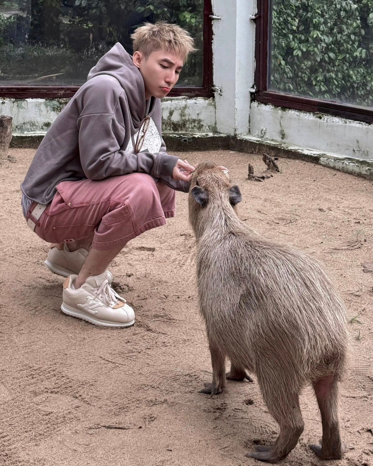 Sự xuất hiện lần này của anh tại Thảo Cầm Viên được nhiều người hâm mộ nói vui là hành động hiện thực hóa tình yêu với "nhà ngoại giao quốc dân" capybara. (Ảnh: FBNV)