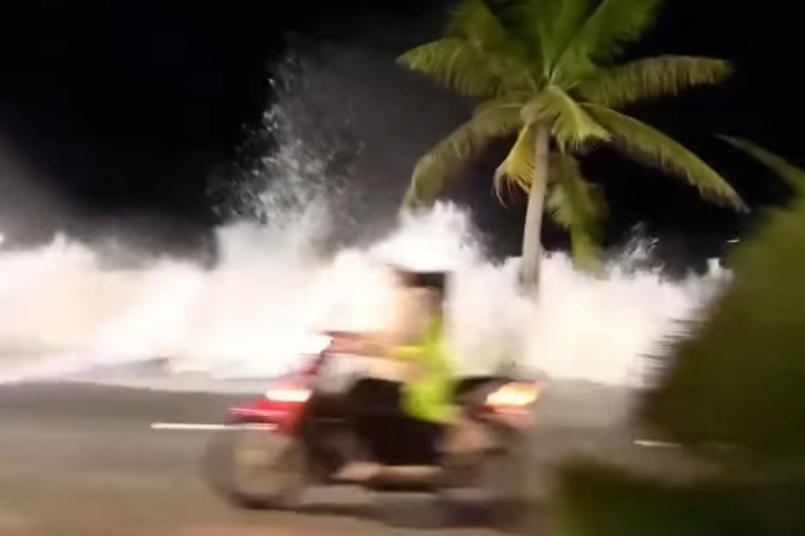 Tối 27/11, người dân Nha Trang ghi lại hình ảnh sóng đánh cao dọc bờ biển, tràn lên cả đường phố. Hình ảnh được quay lúc 19-20h cùng ngày dọc khu Vĩnh Hải, đường Phạm Văn Đồng, phường Bắc Nha Trang (Khánh Hòa).