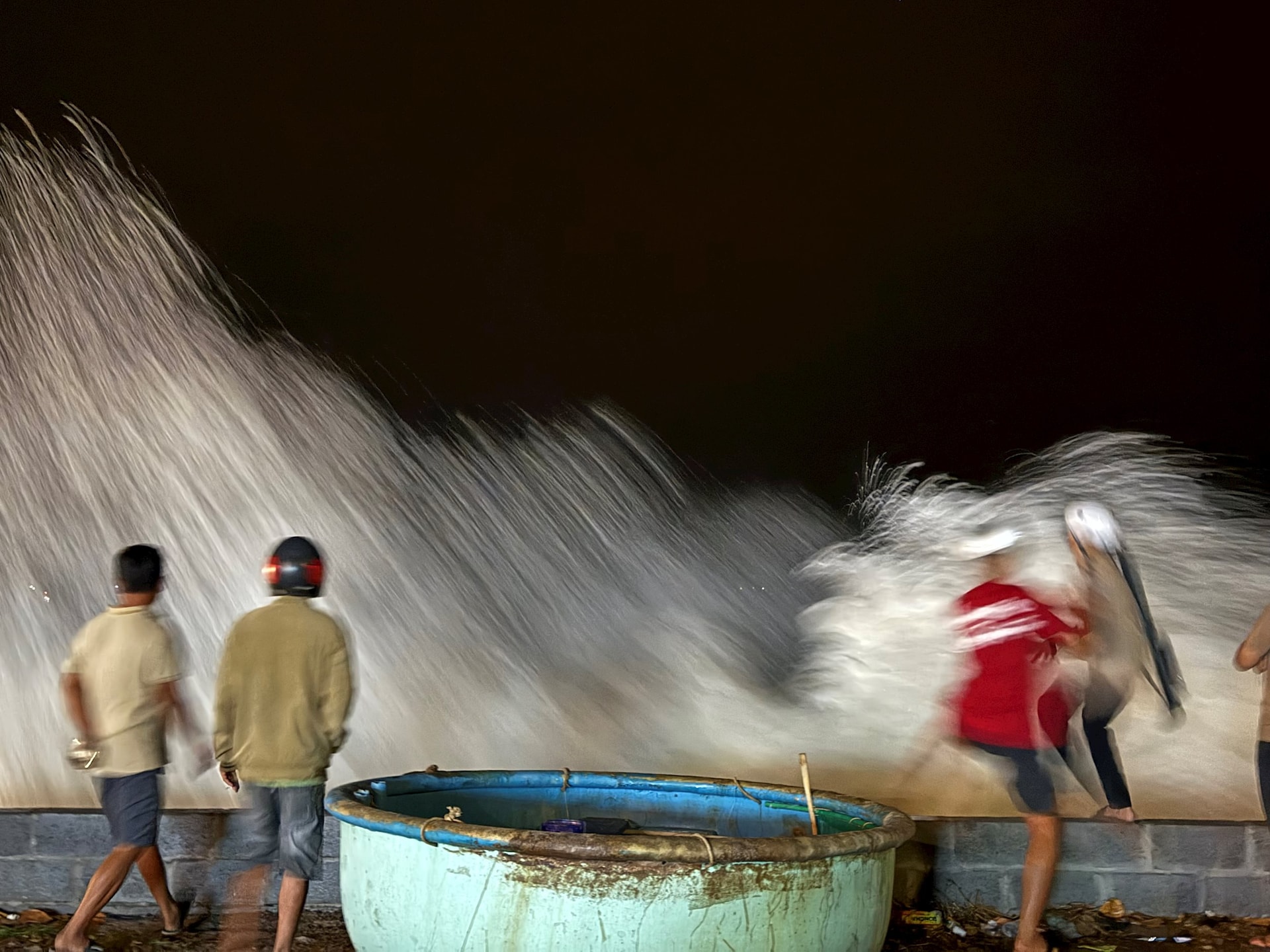 Nhiều người dân địa phương cho biết, 2 – 3 ngày trước đã xuất hiện sóng to gió lớn, nhưng tối nay sóng mạnh và dữ dội hơn.