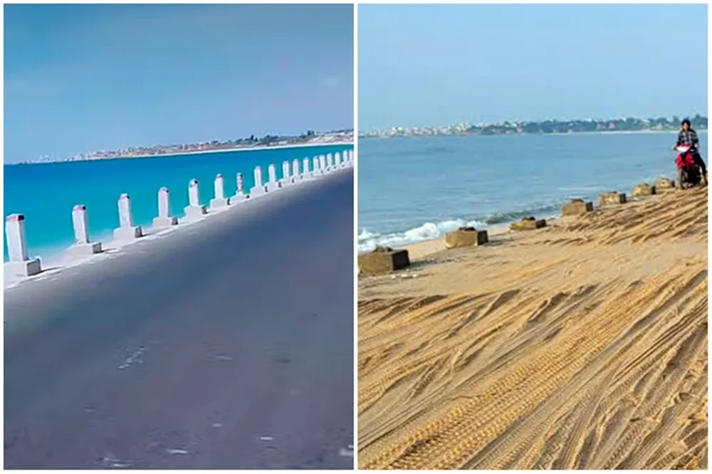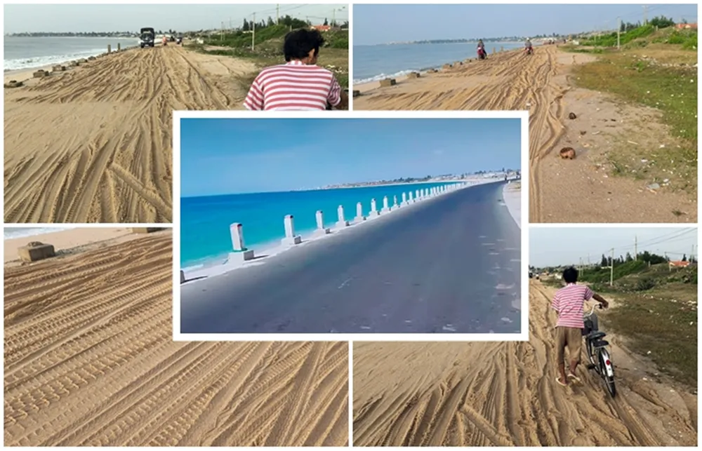 Tuyến đường ven biển trước và sau khi bị cát lấp.