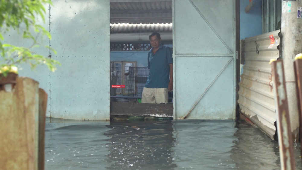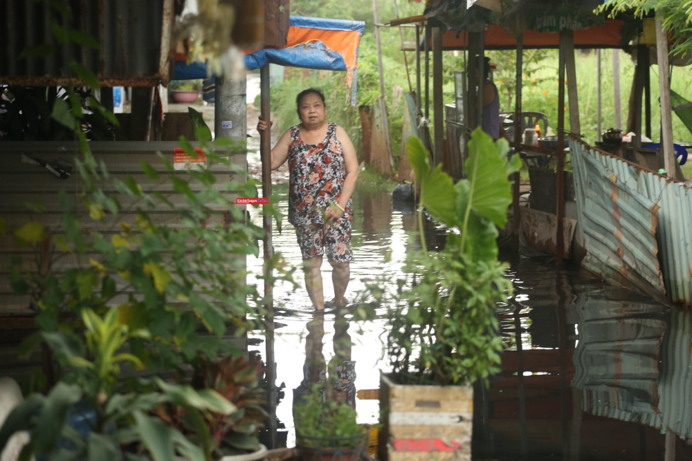 Theo ghi nhận của Kinh tế Sài Gòn Online, chiều ngày 21-10, con đường nhỏ ven kênh Đôi bị ngập nặng, biến thành một dòng sông nước đục ngầu. Nước tràn lênh láng vào nhà dân, mực nước dâng cao hơn 0,4m, ngập quá nửa bánh xe máy...