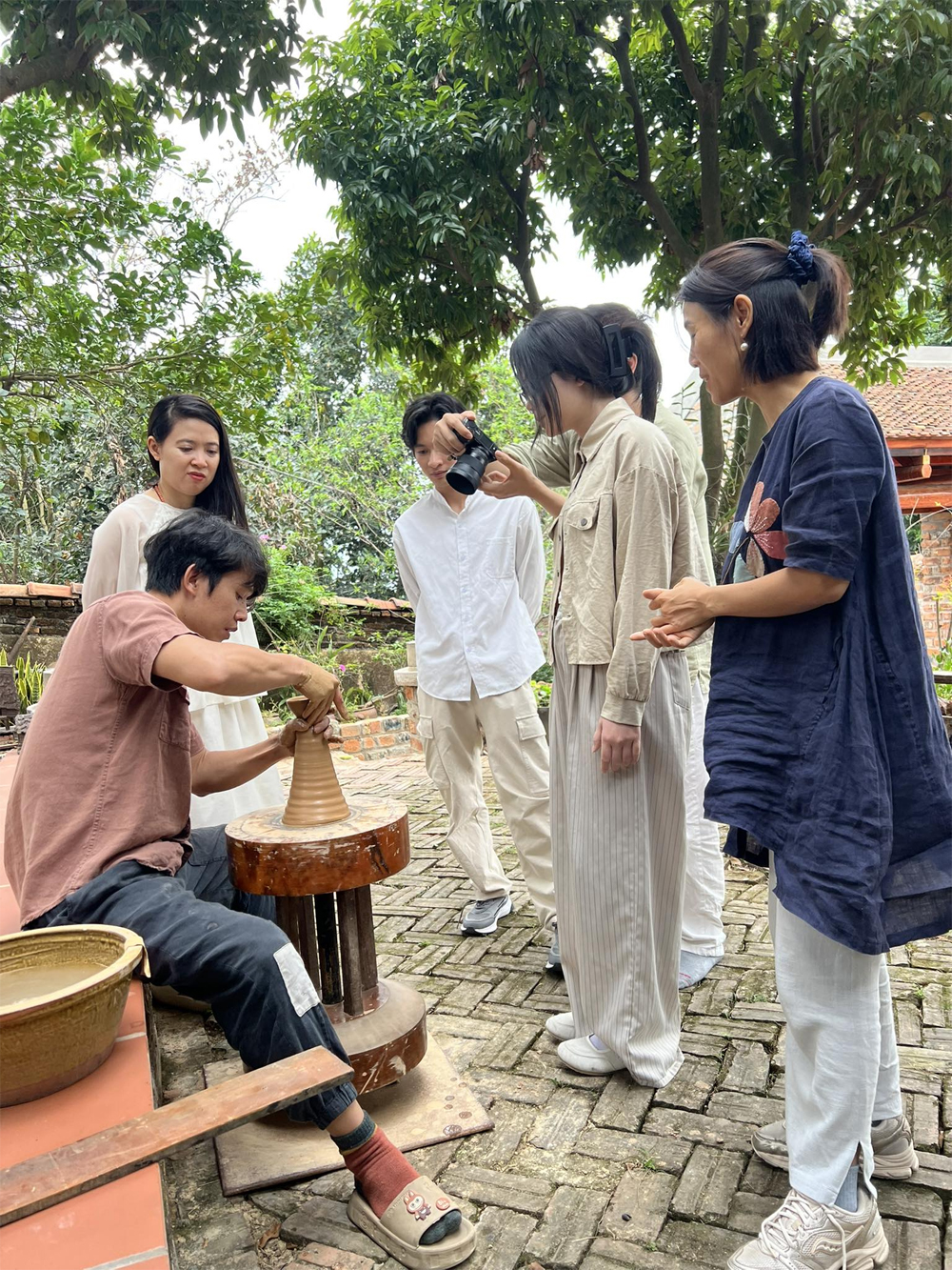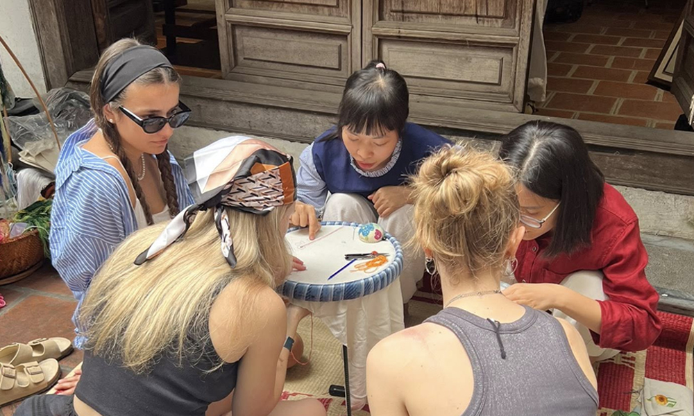 Không chỉ học những kỹ thuật làm gốm, thêu hoa, họ còn được tham quan xưởng, nghe kể về lịch sử làng nghề và khám phá nét đẹp văn hóa truyền thống.