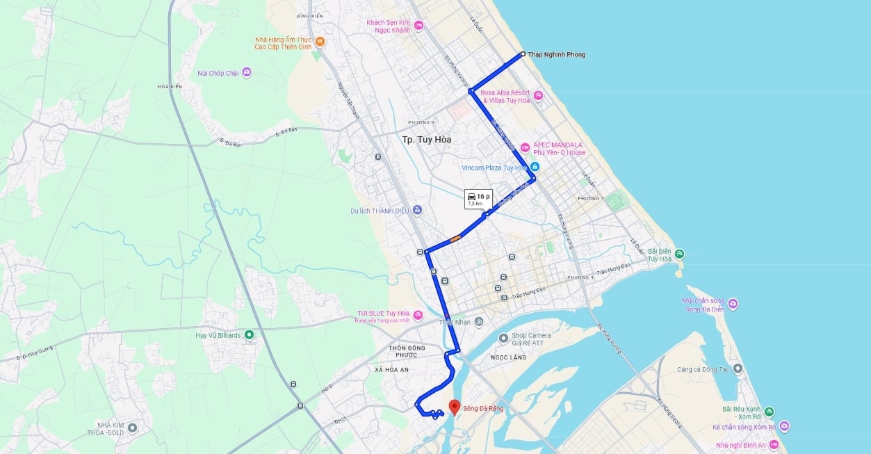 Việc di chuyển đến sông Đà Rằng từ trung tâm thành phố Tuy Hòa khá thuận tiện.