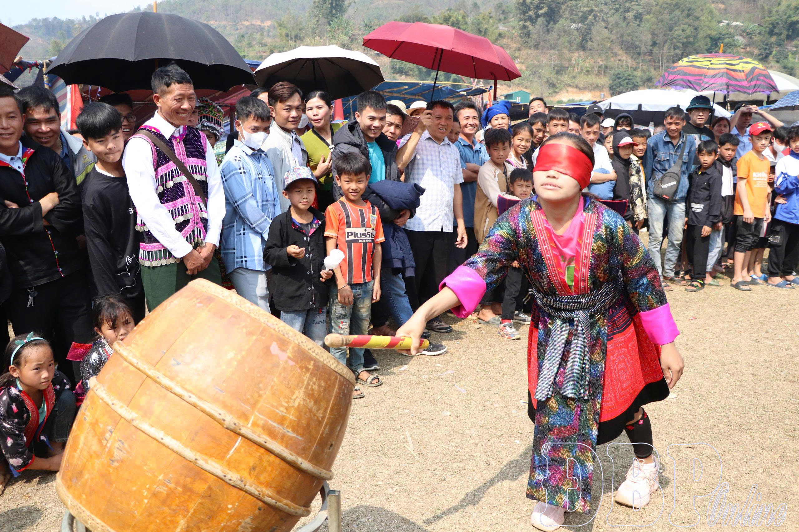 Đồng bào dân tộc Mông xã Sính Phình chơi trò bịt mắt đánh trống.