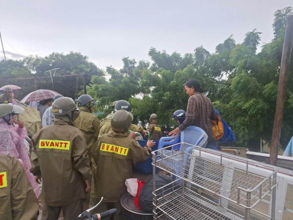 Lực lượng BVANTT phường Phan Rang giúp dân sơ tán.