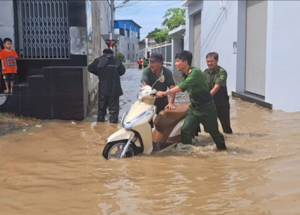 Công an Phường Phan Rang giúp dân sơ tán tài sản khi nước vừa lên, chiều 17/11