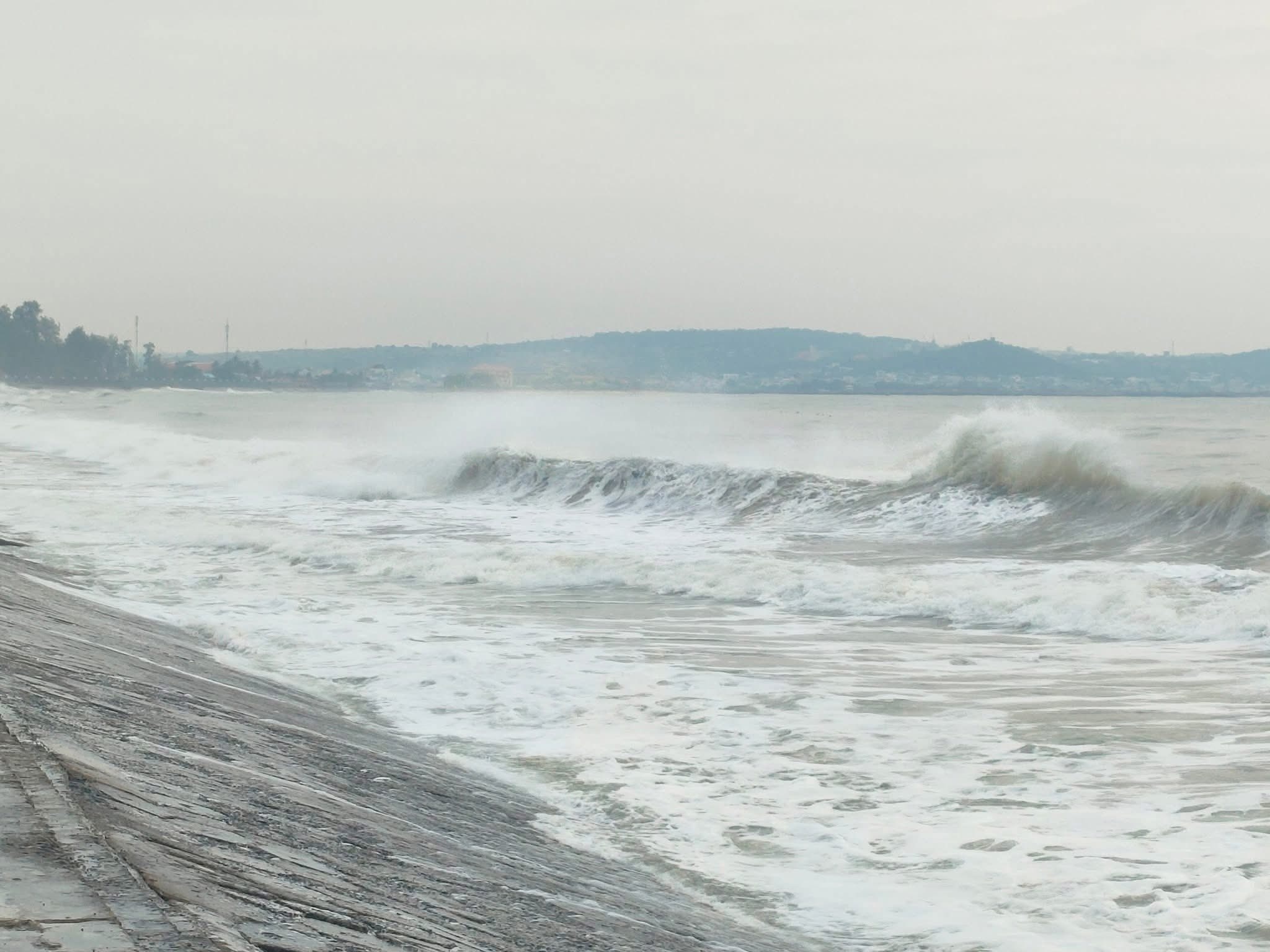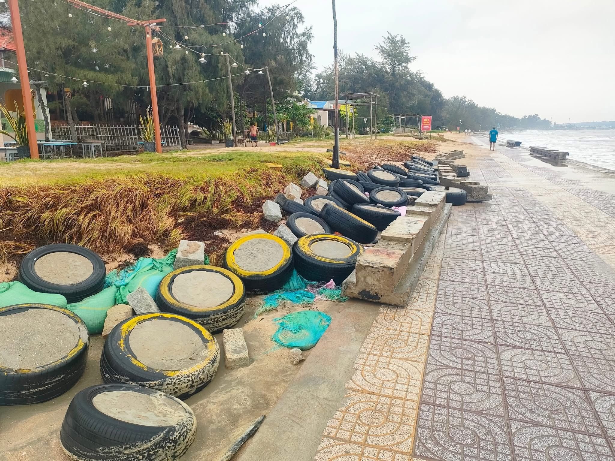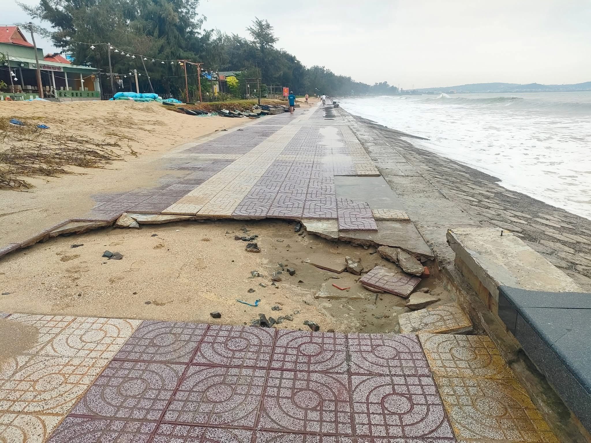 Trước đó, sáng cùng ngày, đoạn kè biển tại khu phố Hàm Tiến 1 bị hư hỏng nghiêm trọng do ảnh hưởng từ thời tiết xấu. Trong báo cáo của UBND phường Mũi Né, hệ thống kè biển này được xây dựng từ năm 2003.