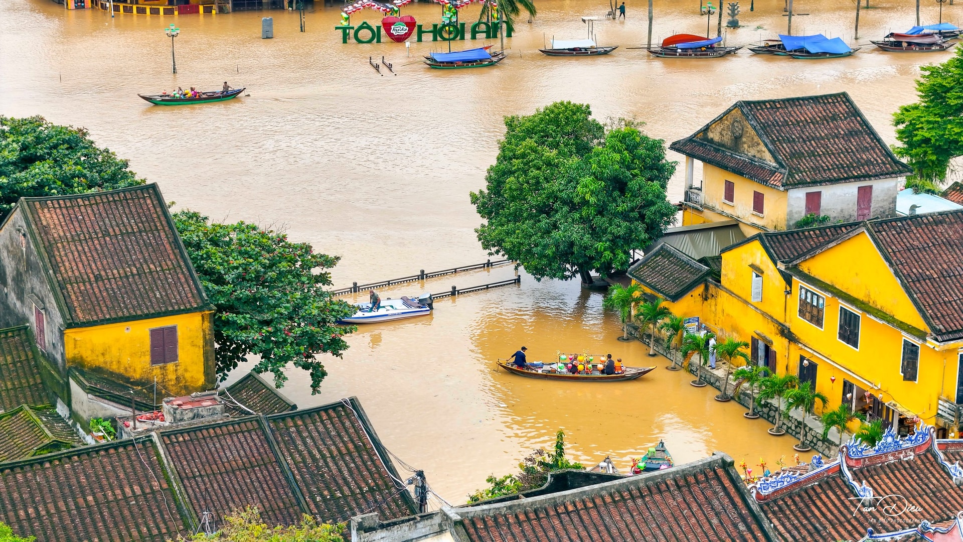 Nước lũ từ sông Hoài chảy tràn vào nhiều căn nhà, con phố ở Hội An.