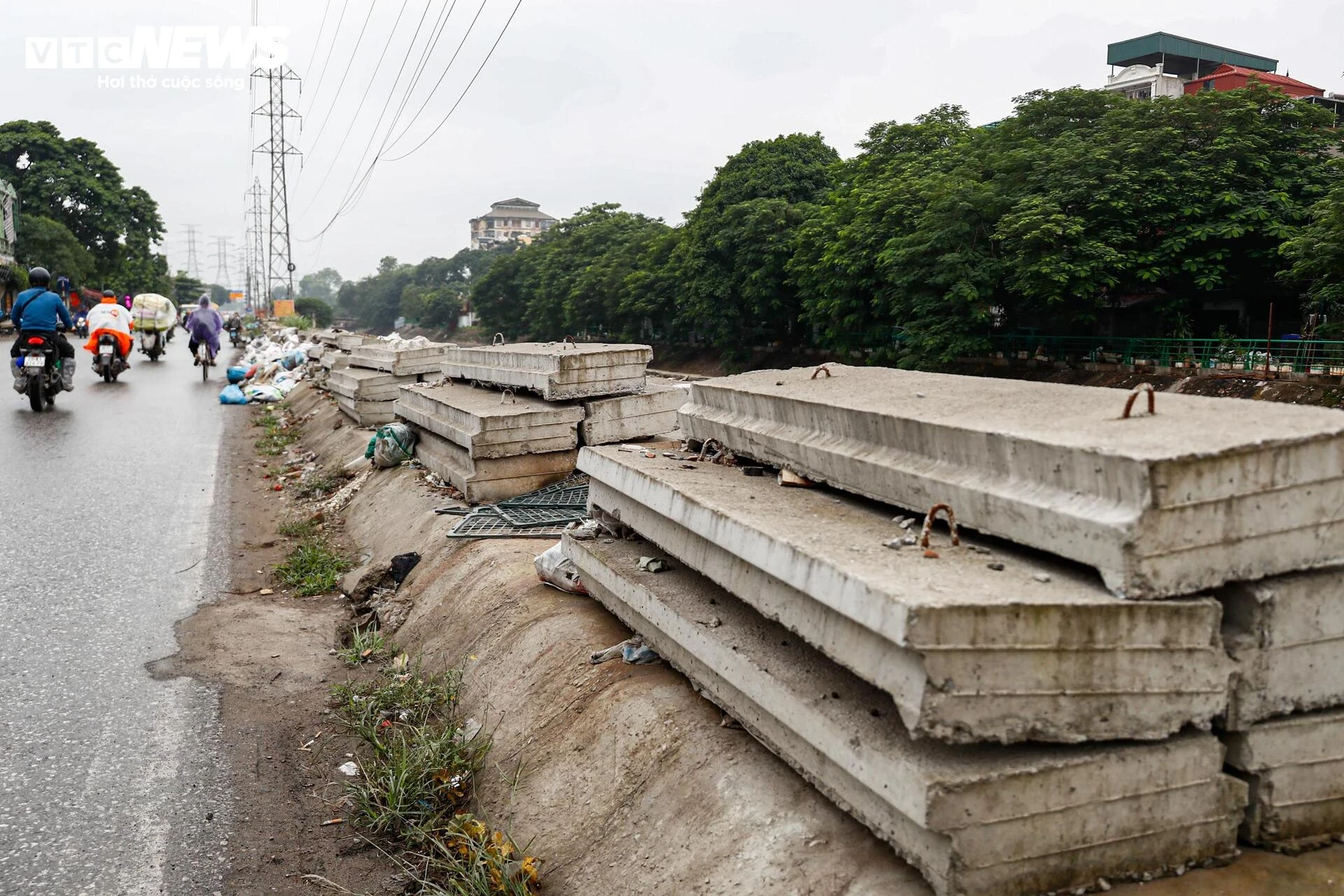 Ngay cạnh nhà ông Thọ, đoạn cống đã thi công nhưng để lâu ngày khiến đất đá rơi xuống, gây tắc nghẽn dòng chảy. Mỗi trận mưa lớn, khu vực lại ngập úng, buộc các hộ dân phải tự đổ đất, chèn gạch để chắn nước. “Không ai muốn sống trong cảnh cứ mưa là nơm nớp lo nước tràn vào nhà”, một người dân sinh sống tại đây nói.