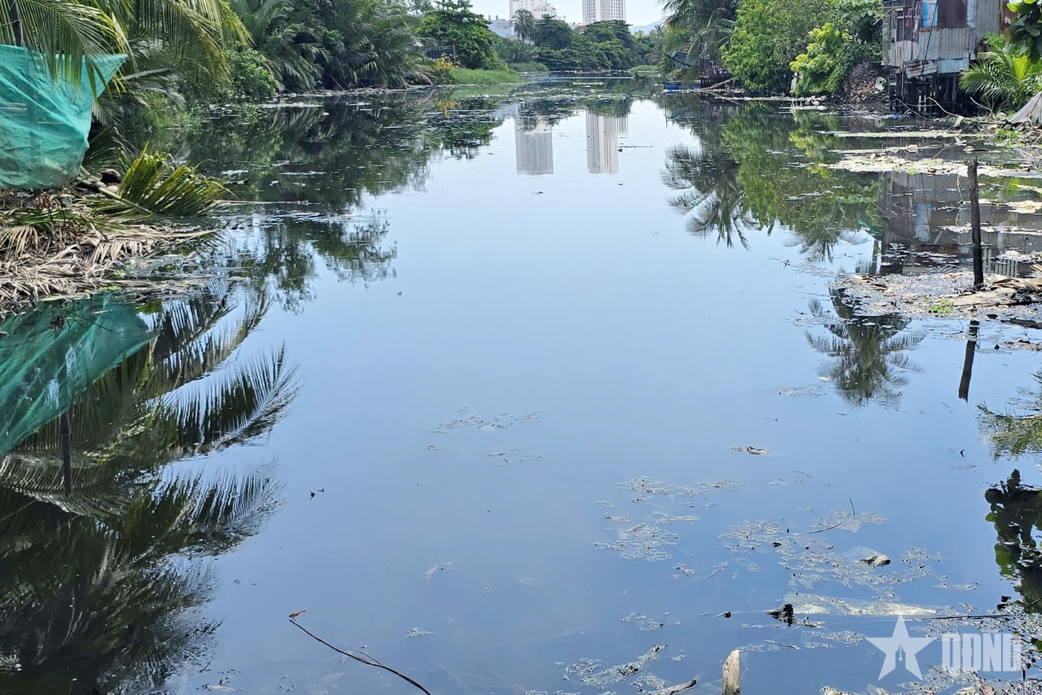 Một đoạn sông Kim Bồng qua đường Bến Cá (Tây Nha Trang, Khánh Hòa). (Ảnh chụp ngày 2-10)
