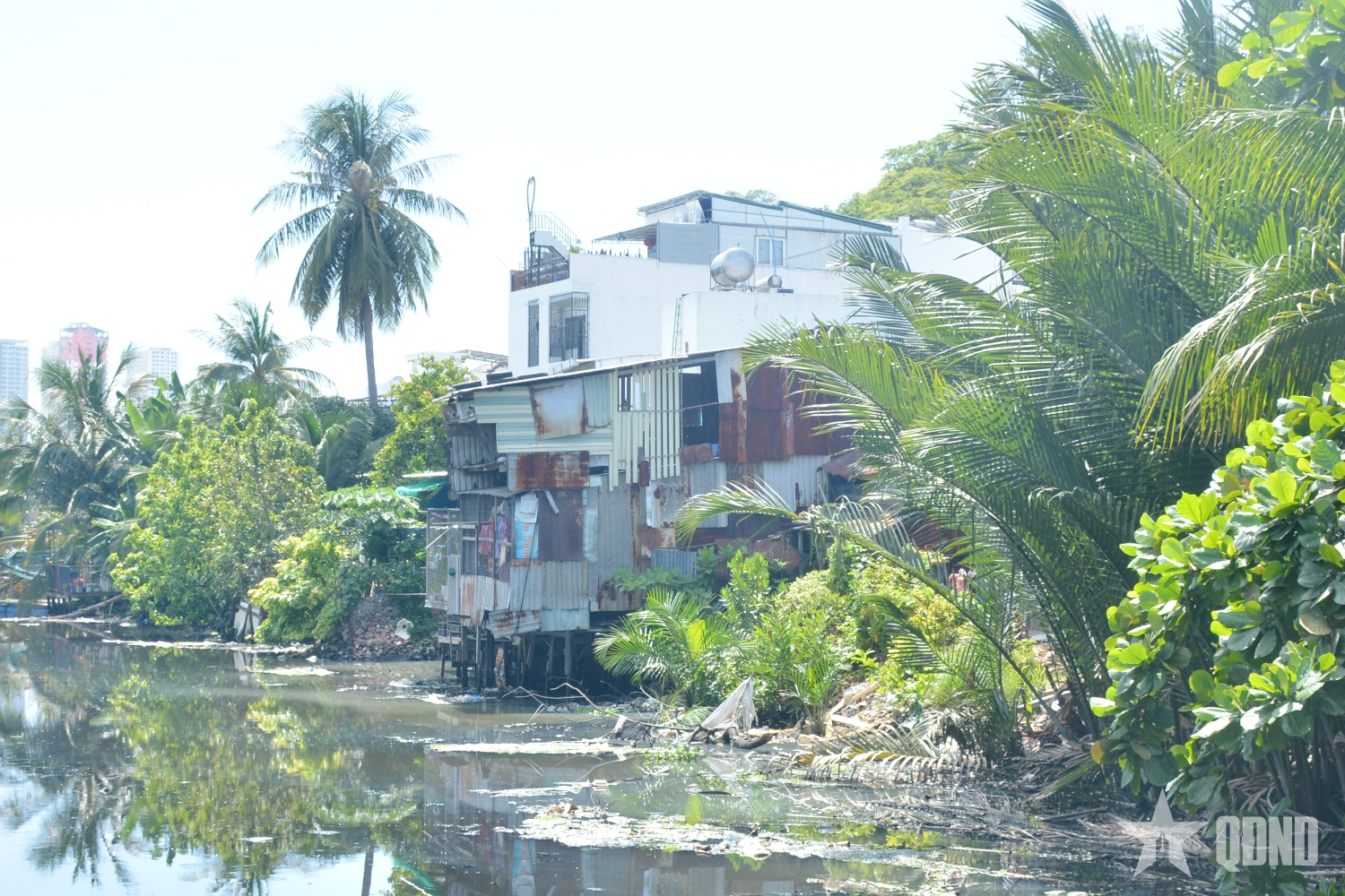 Tình trạng dựng nhà lấn sông, đổ rác xuống sông diễn ra nhiều năm qua. (Ảnh chụp ngày 2-10)