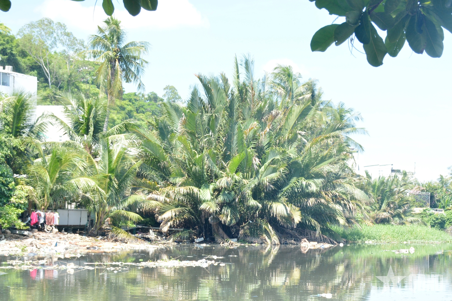 Rác thải dày đặc ven sông. (Ảnh chụp ngày 2-10)