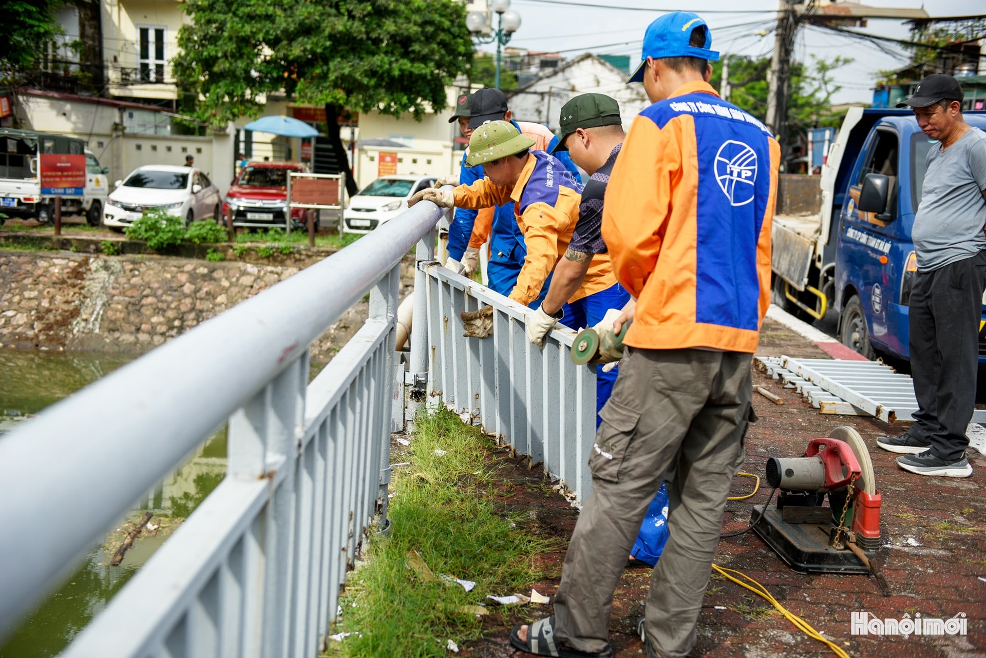 Những hàng rào sắt được lắp đặt dọc bờ sông. Dòng sông đang thay đổi, hứa hẹn một không gian sạch đẹp và an toàn hơn.