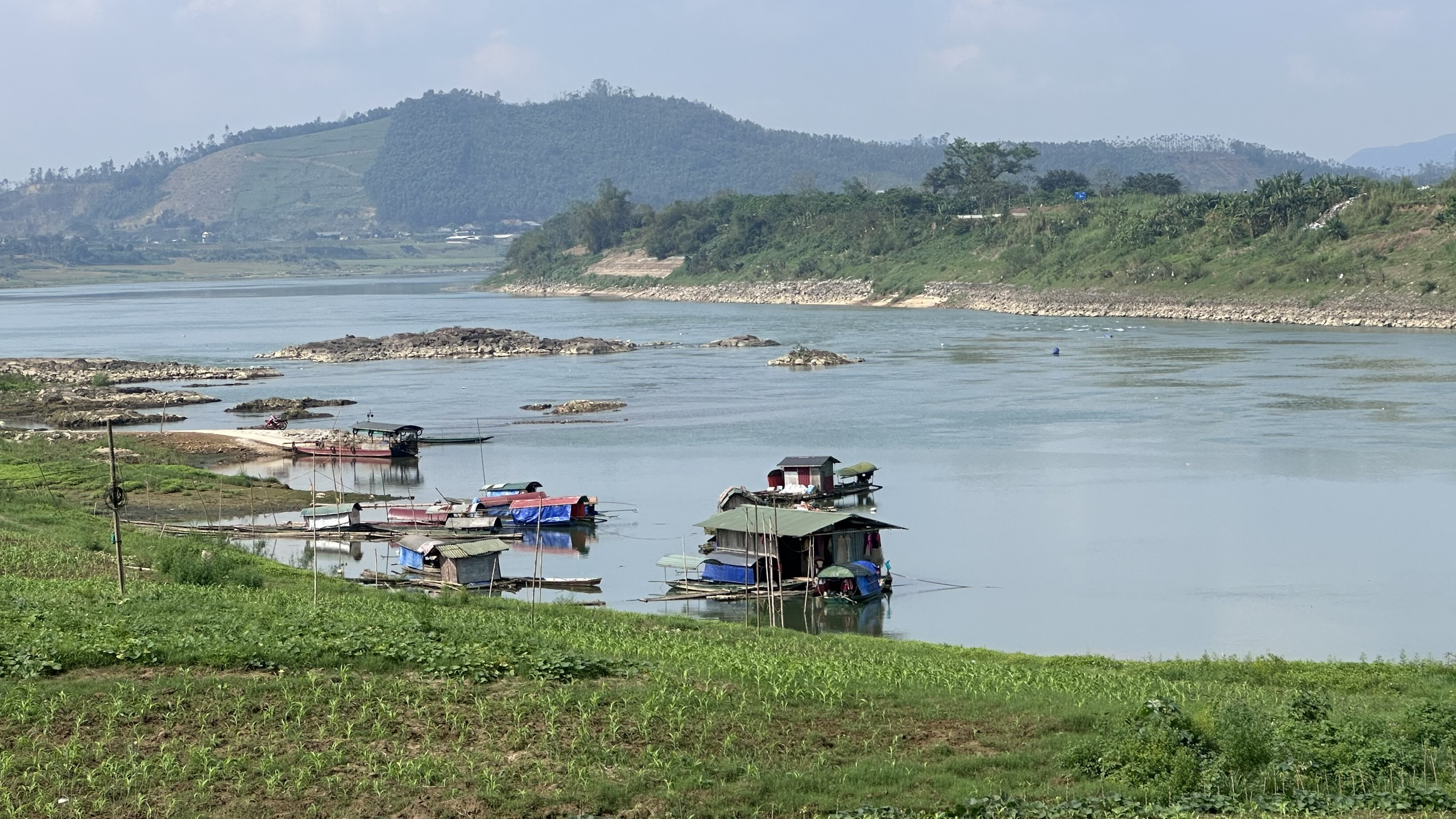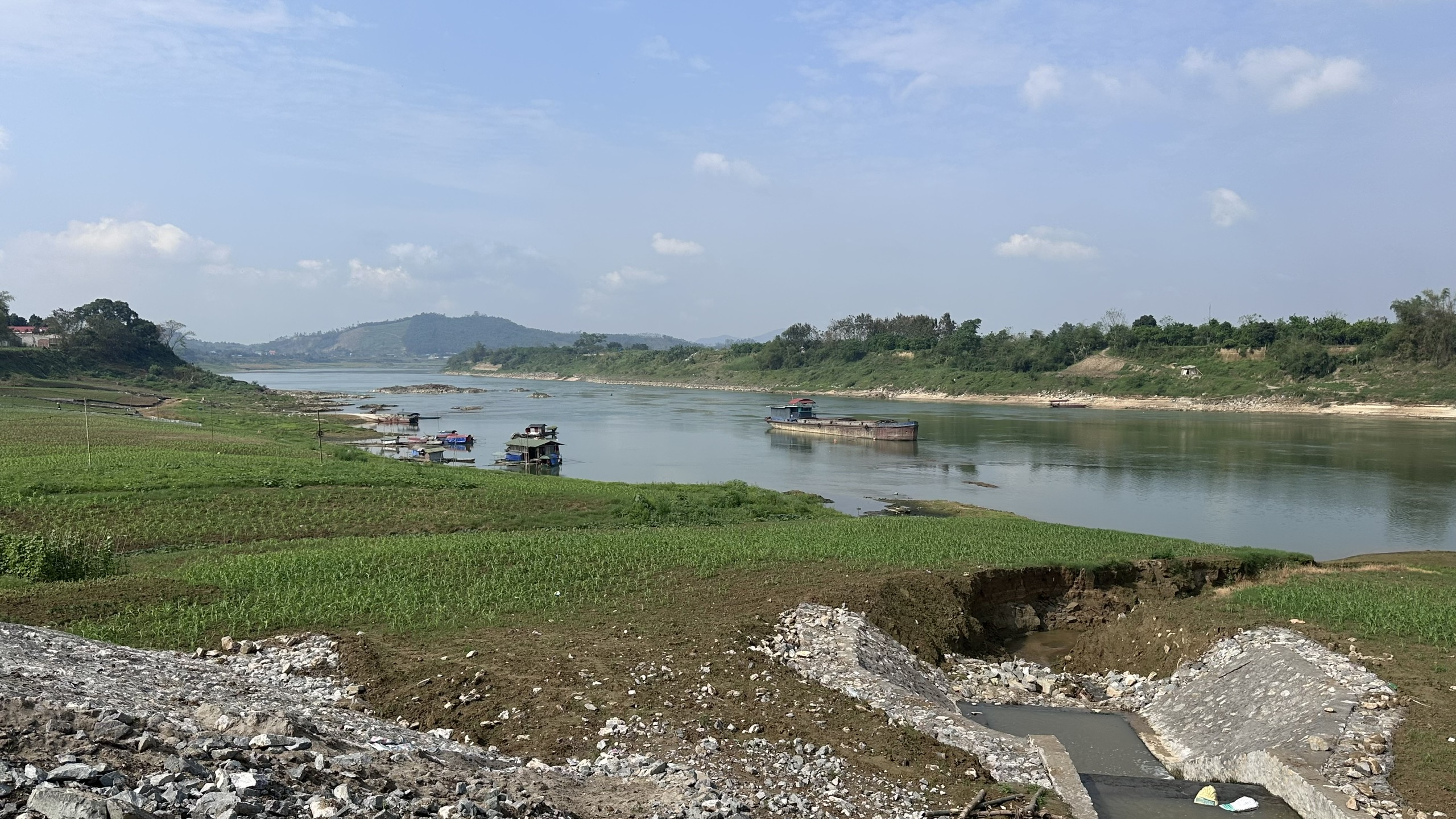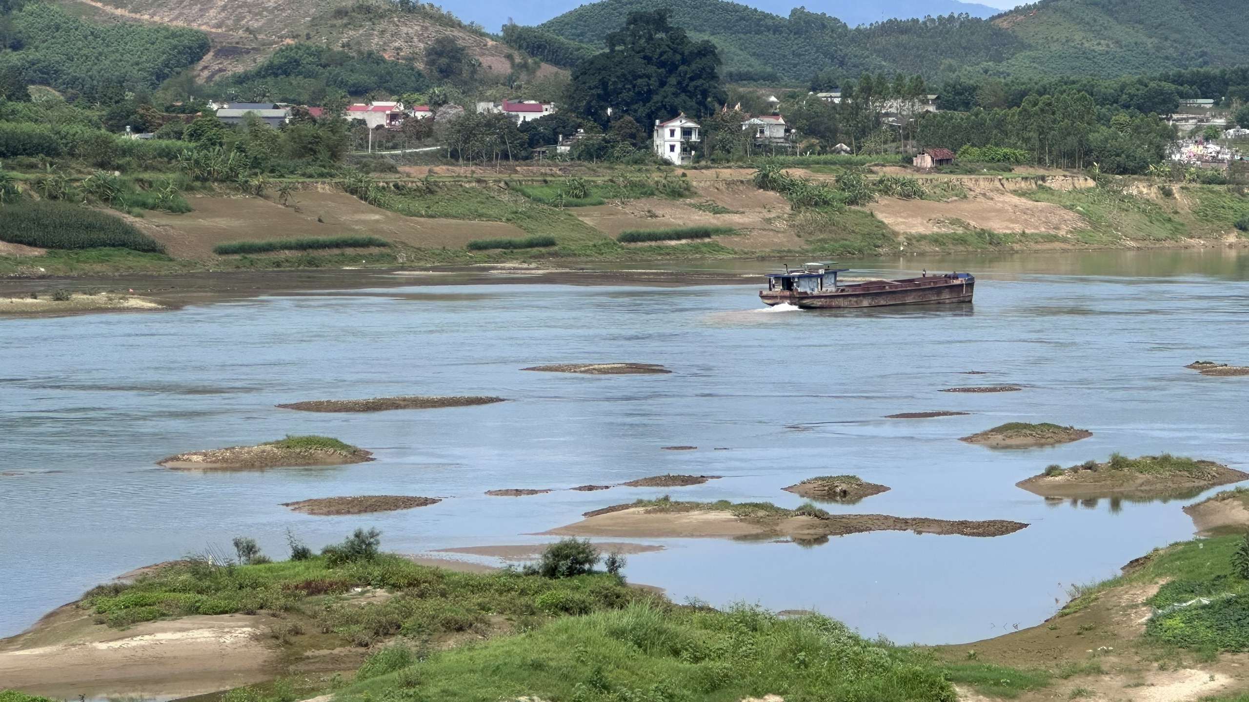 Các thuyền bè cũng gặp nhiều khó khăn trong quá trình di chuyển. Một số nơi, nước cạn trơ đáy có thể lội qua sông.