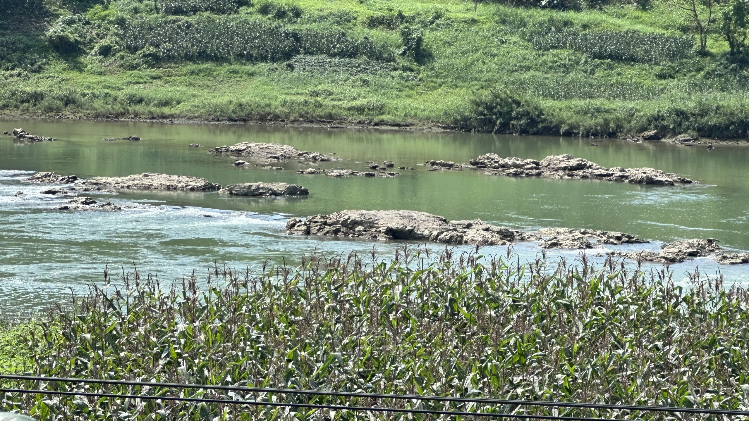 Mực nước xuống thấp cùng với lượng rác, cây cối vướng lại sau lũ khiến dòng Lô ngày càng trở nên tiêu điều.