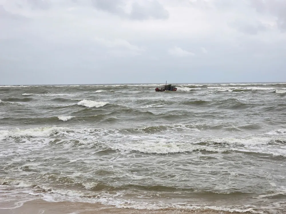 Sóng lớn đánh chìm tàu cá của ngư dân. Ảnh: MINH TRƯỜNG