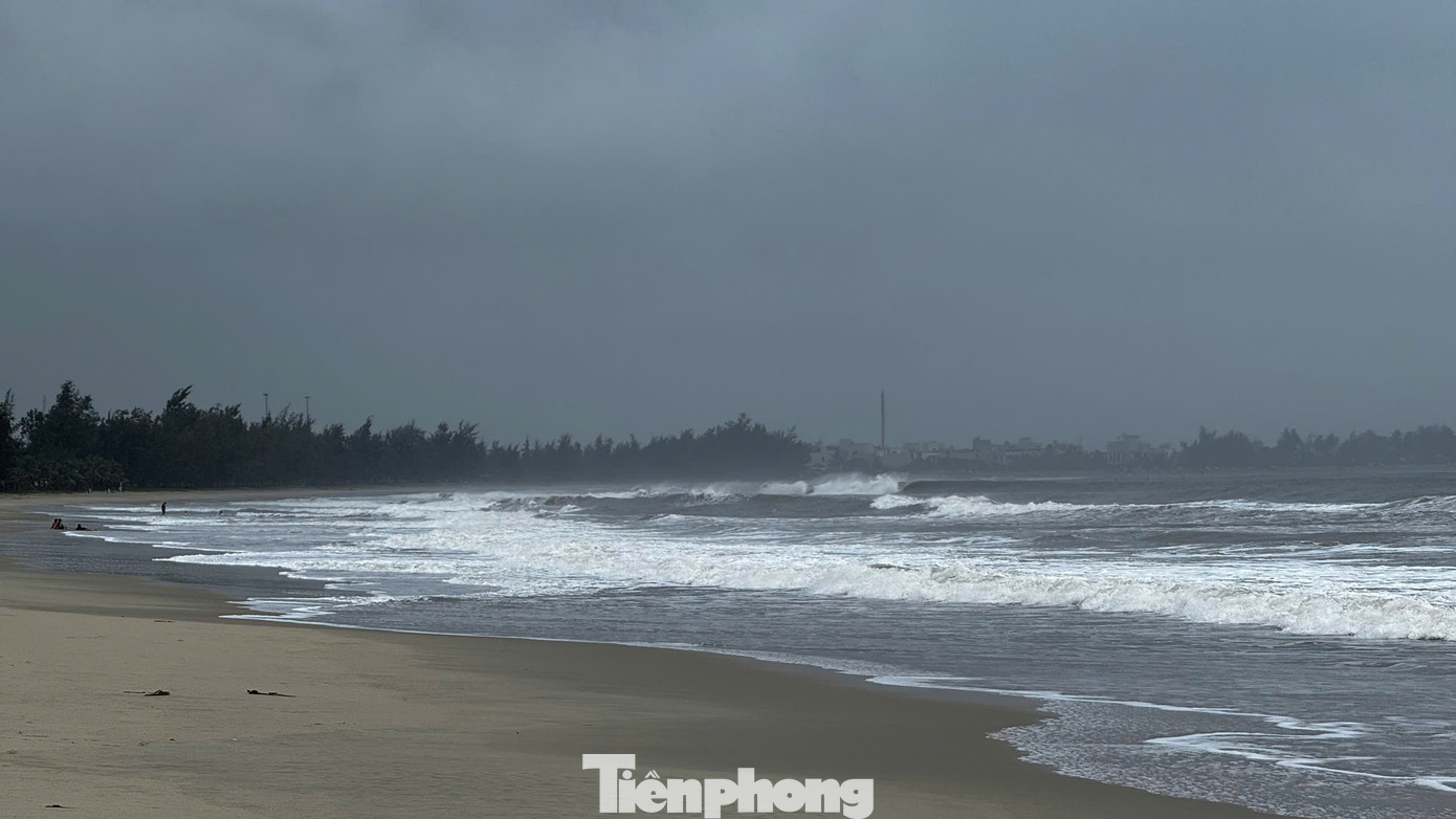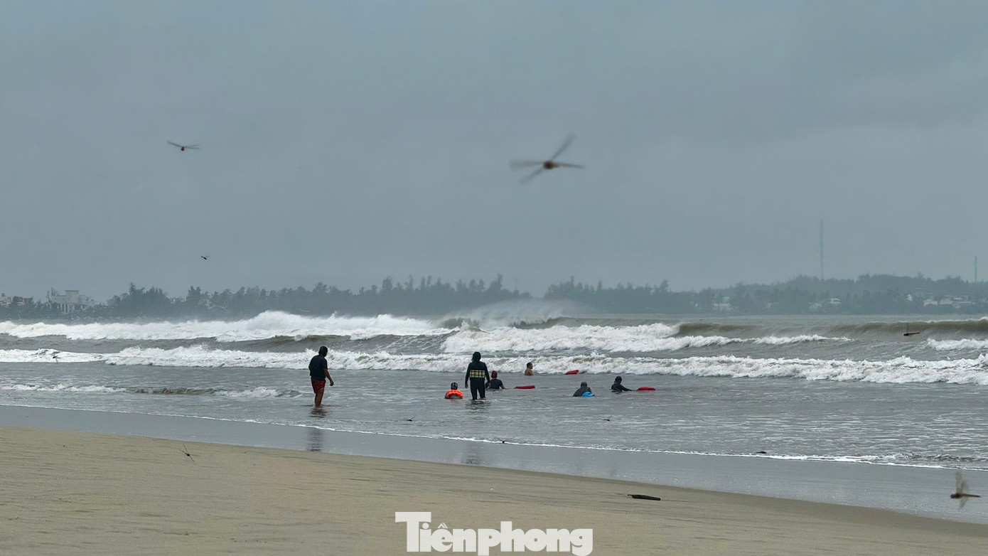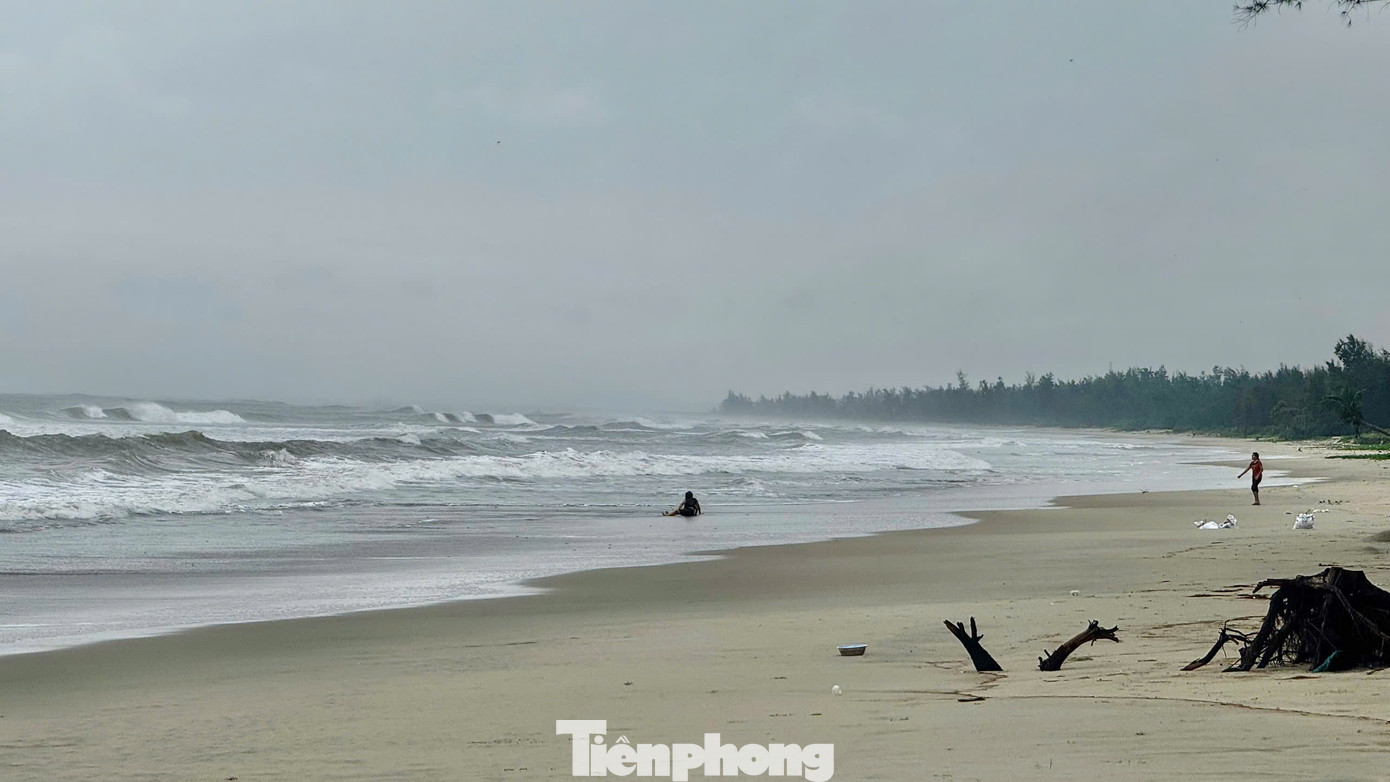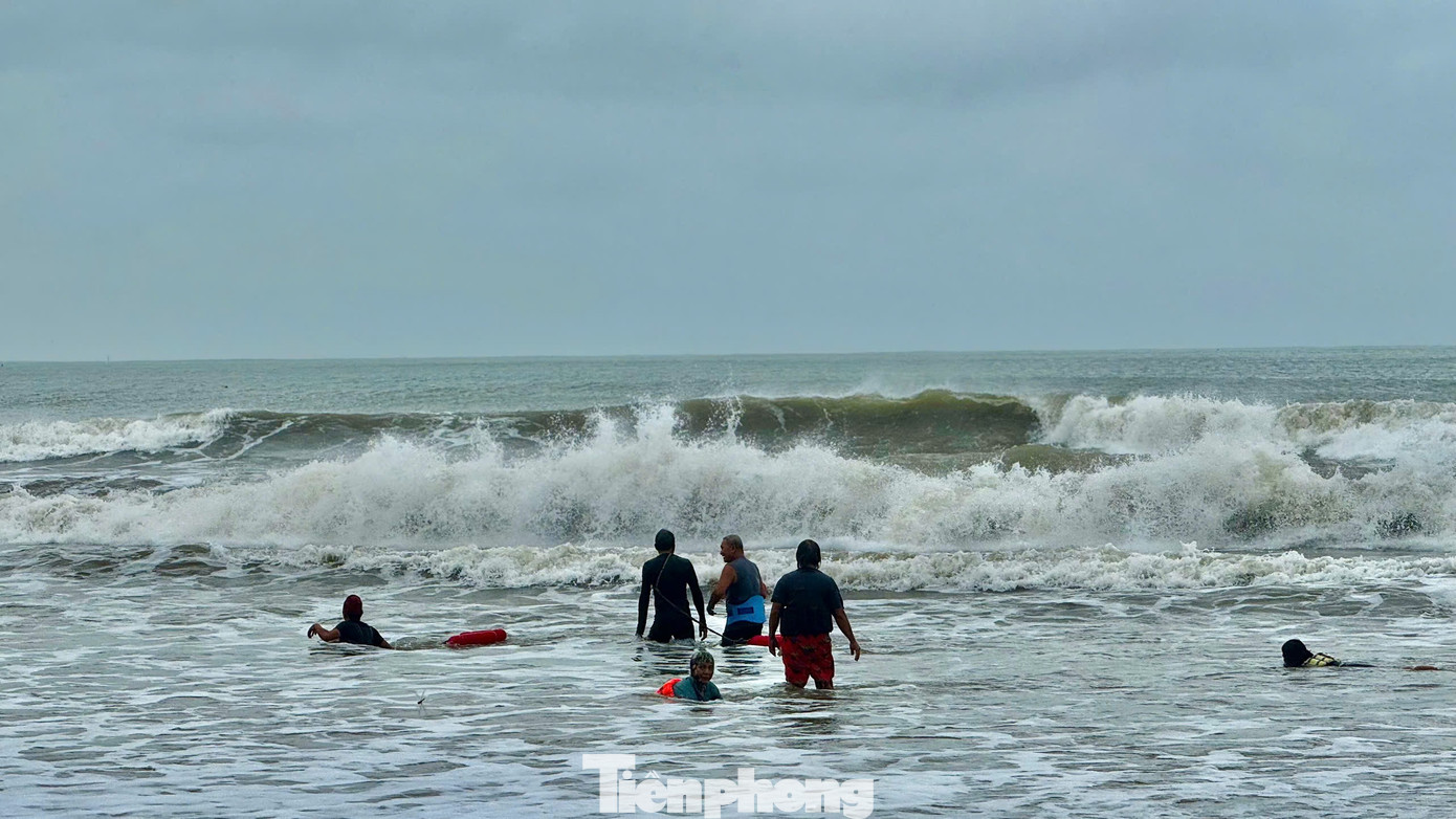 Ghi nhận của phóng viên Tiền Phong, khoảng 16h chiều cùng ngày, khi gió bắt đầu mạnh dần, mưa mỗi lúc một nặng hạt, sóng biển cao từ 1–2m liên tục xô bờ, nhiều người dân vẫn nô đùa, bơi lội ngay khu vực bãi tắm chính, giữa nền trời xám xịt, gió quất tung bọt biển.