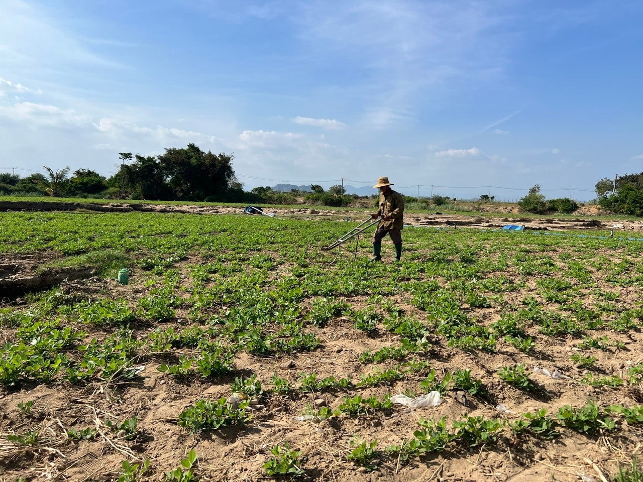 Nông dân chăm sóc đậu phộng