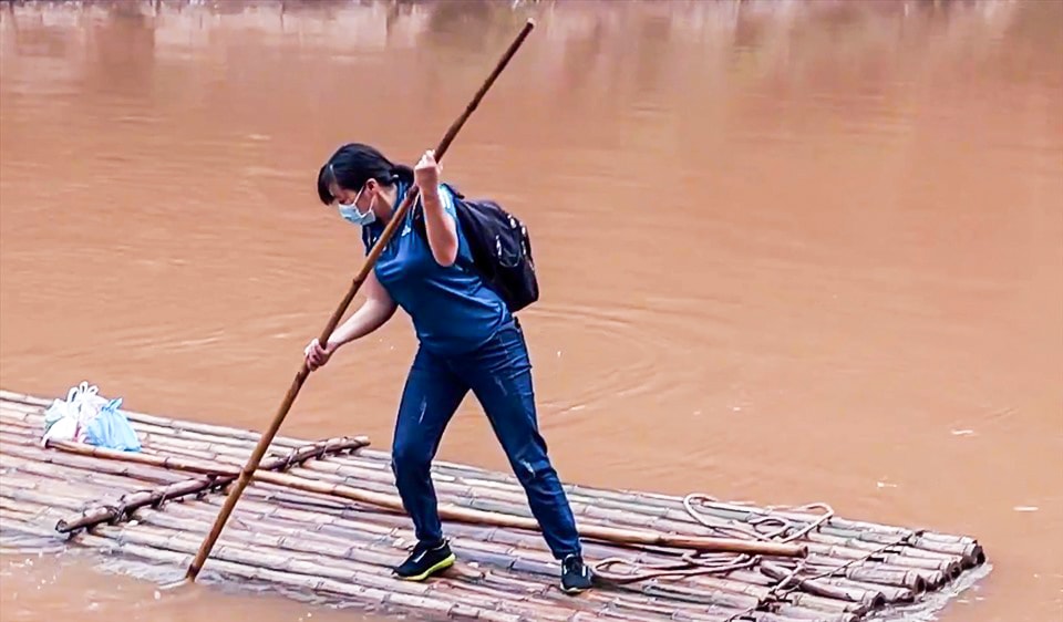 Cô giáo Ly Thị Cộng vượt suối đến trường "gieo con chữ" bằng bè tự chế. (Ảnh minh họa)