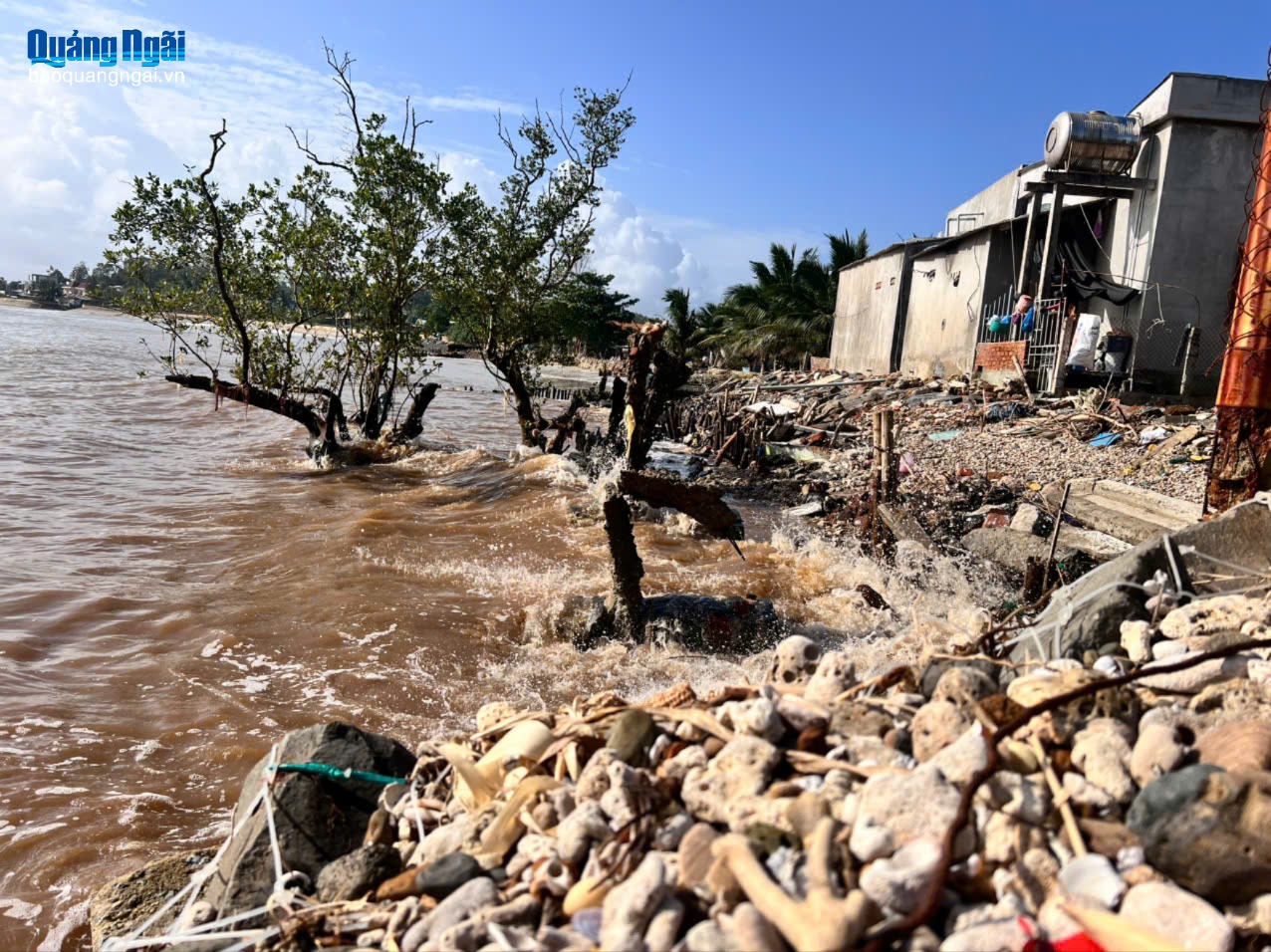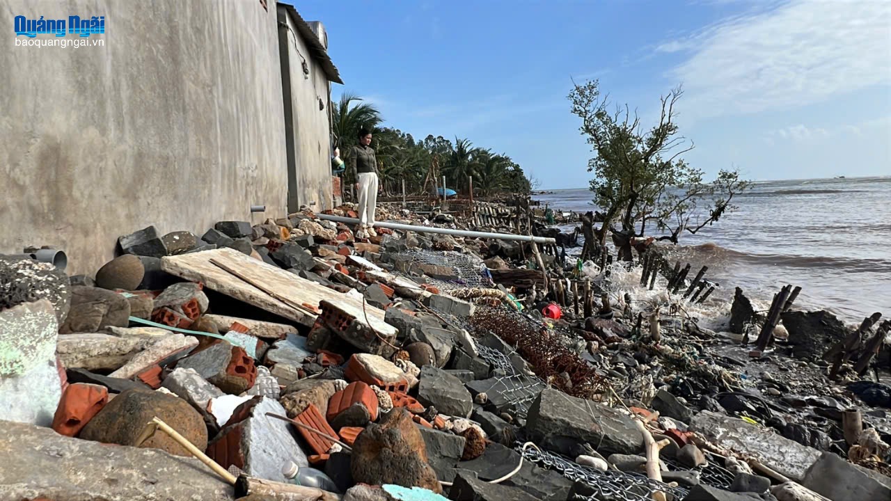 Đứng trước bờ biển bị khoét sâu, chị Nhượng chỉ biết thở dài chia sẻ, gia đình không dám ở lại gần biển nữa. Mỗi khi thủy triều dâng, sóng cao quét qua, mọi người đều phải di tản tạm thời. Không có bờ kè kiên cố thì người dân ở khu vực này phải luôn sống trong cảnh ăn không ngon, ngủ không yên.