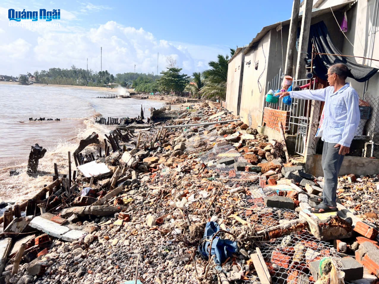 Mấy năm nay, người dân tự bỏ tiền ra xây kè tạm, nhưng vài đợt sóng mạnh là bị cuốn trôi. Có gia đình vừa xây trong năm nay mà chỉ vài lần sóng đánh đã vỡ nát hết.