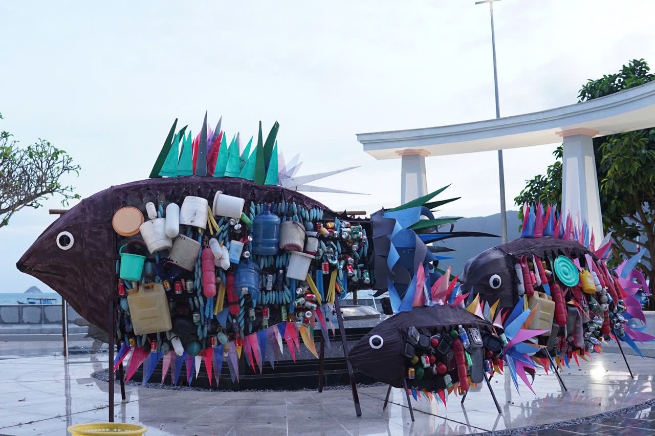 Những tác phẩm nghệ thuật được thực hiện từ những vật liệu tái chế góp phần lan tỏa ý thức của người dân và du khách khi đến Côn Đảo. Ảnh: H.L