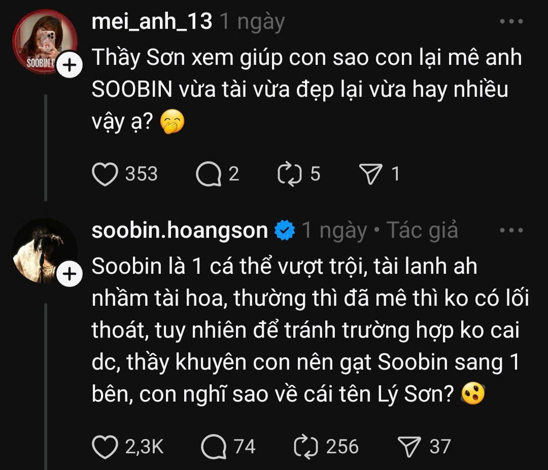 Tưởng chỉ là một chiến dịch quảng bá vui vẻ, SOOBIN lại khiến khán giả bất ngờ khi nhập vai “thầy bói” một cách đầy nghiêm túc. Nam ca sĩ liên tục phản hồi bình luận của người hâm mộ, “xem quẻ” bằng những câu trả lời vừa hài hước vừa duyên dáng, khiến nhiều đoạn hội thoại nhanh chóng trở nên viral.