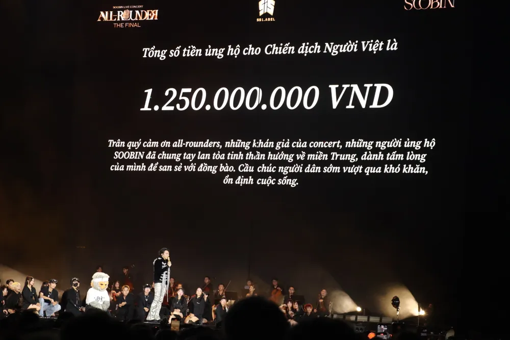 Sau khi đêm concert khép lại, Soobin Hoàng Sơn đã công bố số tiền ủng hộ cho chiến dịch người Việt là 1,25 tỉ đồng. Đây là số tiền mà khán giả tham gia concert, fan hâm mộ đã chung tay cùng nam ca sĩ hướng về miền Trung san sẻ những khó khăn với đồng bào bị bão lũ.