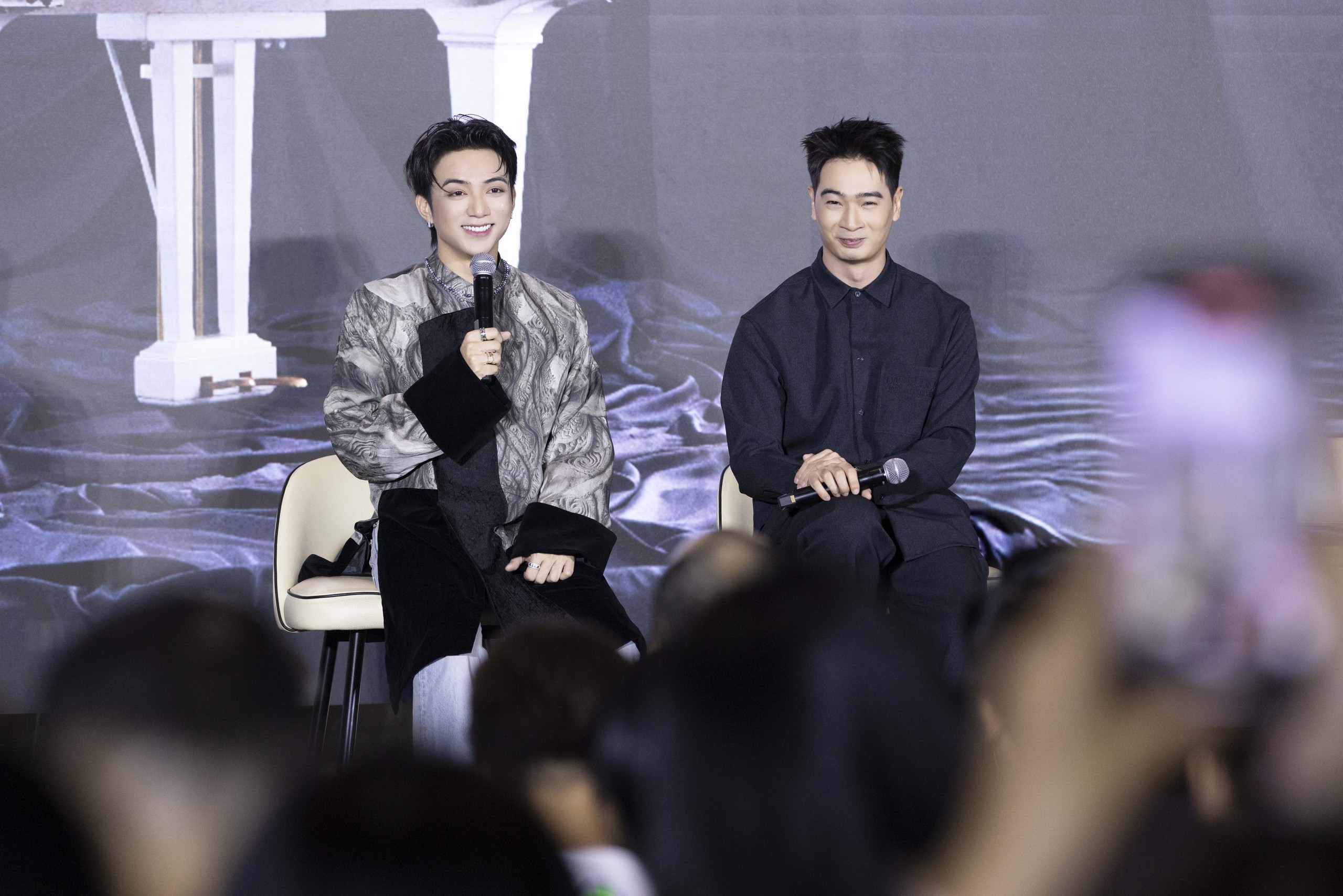 Soobin và ê kíp chia sẻ tại họp báo.