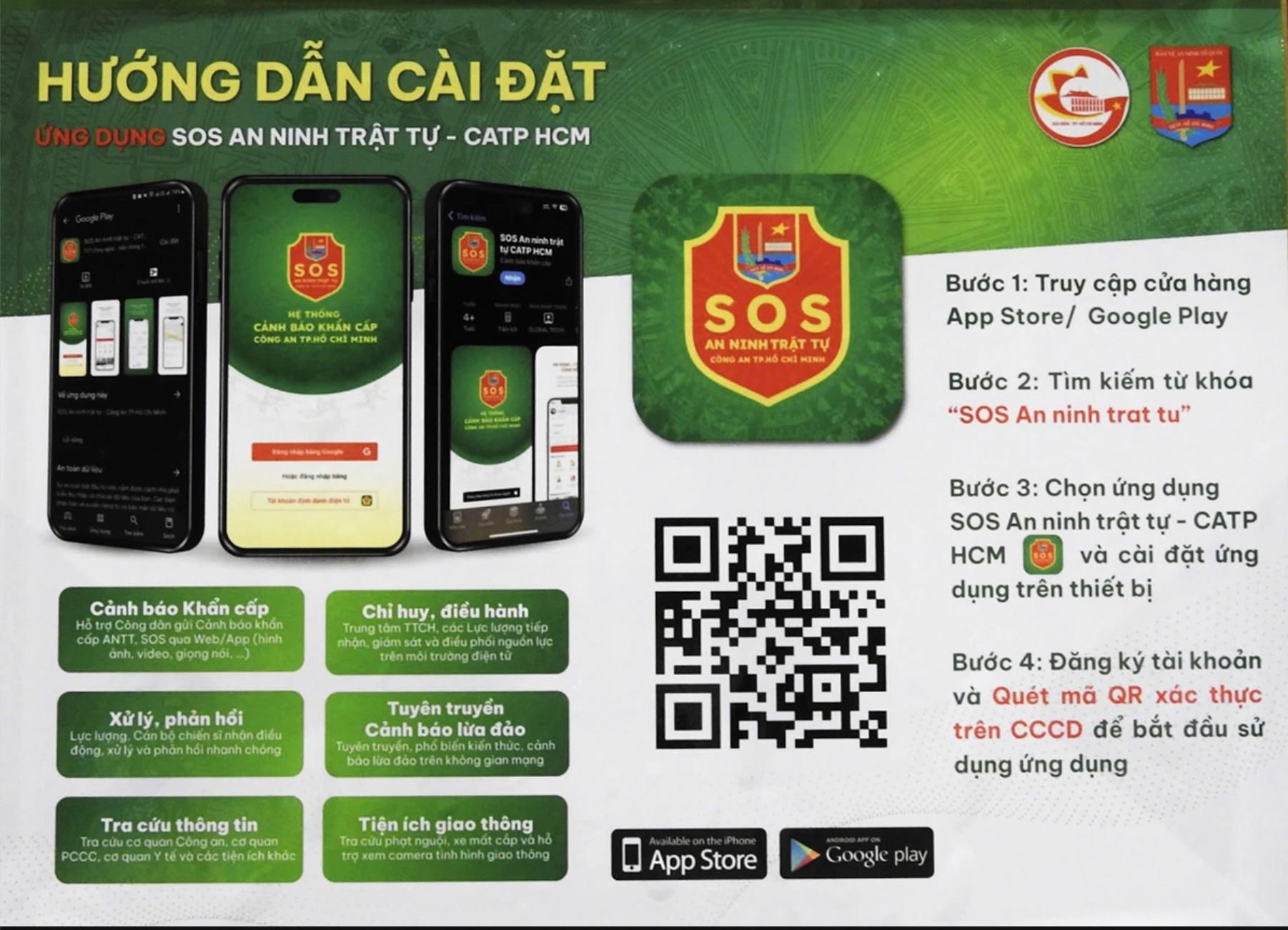 Sở VH-TT TPHCM đề nghị các cơ quan báo chí TPHCM, các cơ quan báo chí đặt văn phòng đại diện tại TPHCM đẩy mạnh thông tin, thực hiện các chuyên mục, chuyên đề, phóng sự, tin bài, video clip, infographic, e-magazine, longform để tuyên truyền, vận động, hướng dẫn người dân cài đặt và sử dụng ứng dụng “SOS an ninh trật tự - CA TPHCM".
