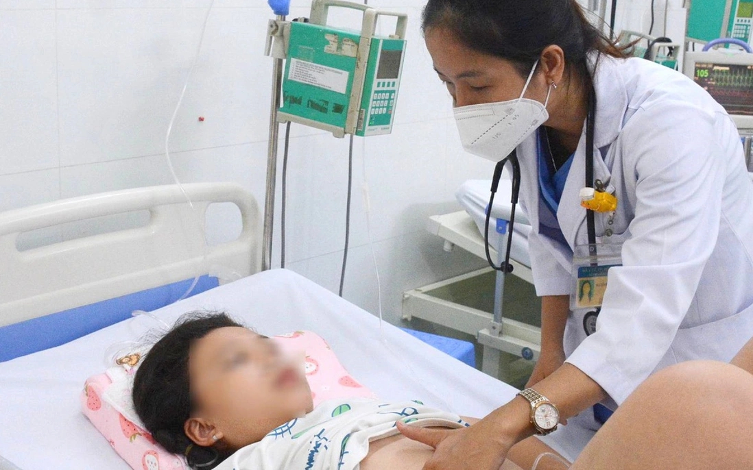 Bác sĩ thăm khám cho trẻ mắc sốt xuất huyết. Ảnh: Đông Quân
