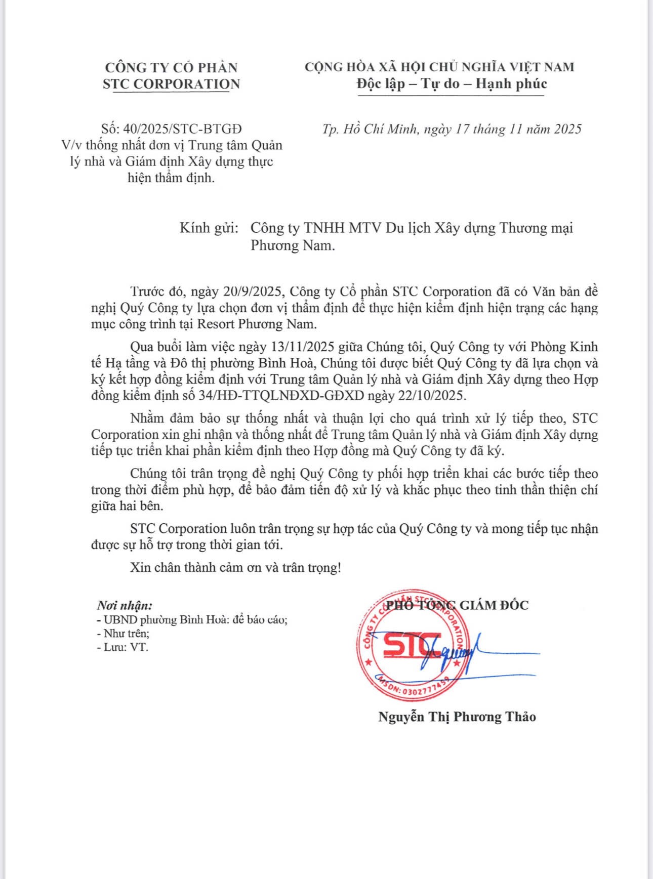 STC Corporation khẳng định đồng thuận và sẽ phối hợp cung cấp hồ sơ kỹ thuật phục vụ quá trình giám định.