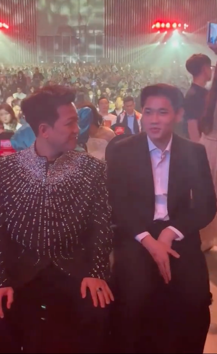 Khoảnh khắc Trường Giang trò chuyện cùng Đình Bắc nhận được nhiều sự chú ý trên mạng xã hội. (Ảnh: chụp màn hình)