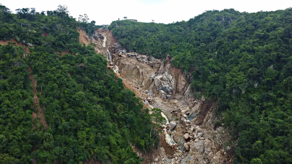 Dòng chảy khổng lồ trên núi Tân Lai dẫn xuống chân núi. Ảnh: CHÍNH THÀNH
