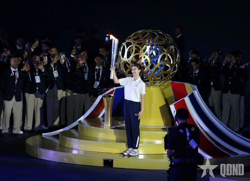 Cựu võ sĩ Panipak Wongpattanakit trong nghi thức thắp đuốc SEA Games 33. Ảnh: qdnd.vn