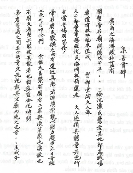 Bản chép tay bia đình Hải Châu, bút tích cố NGƯT Nguyễn Đình Thảng.