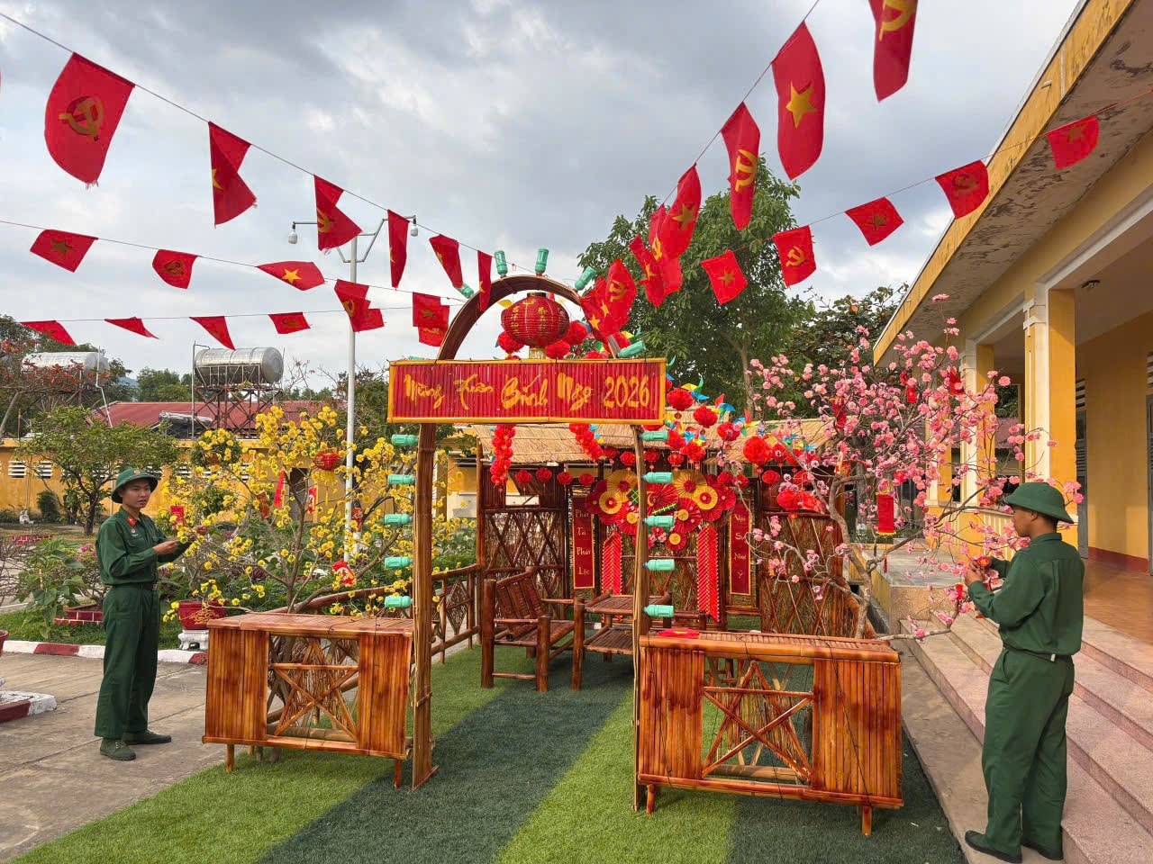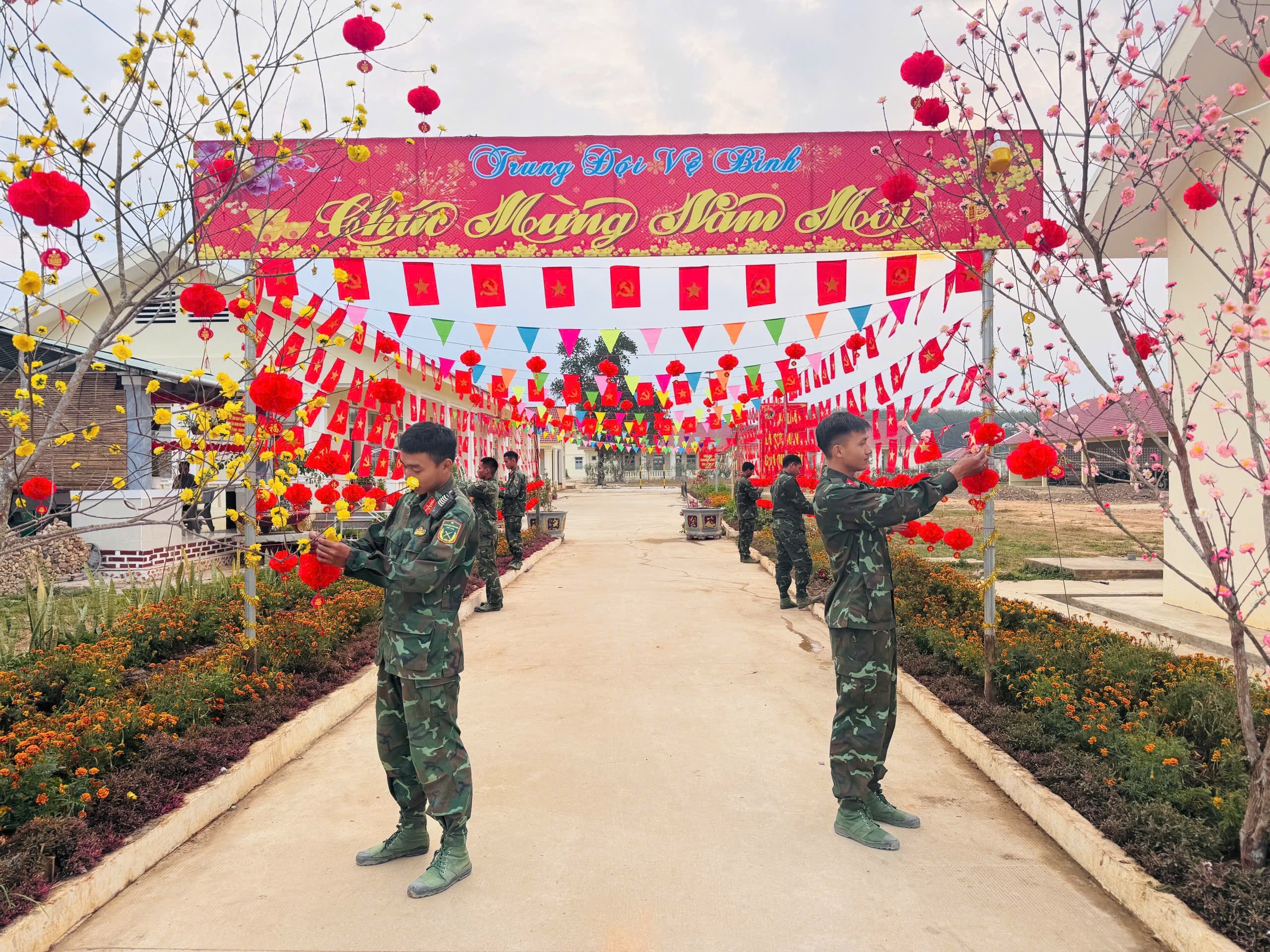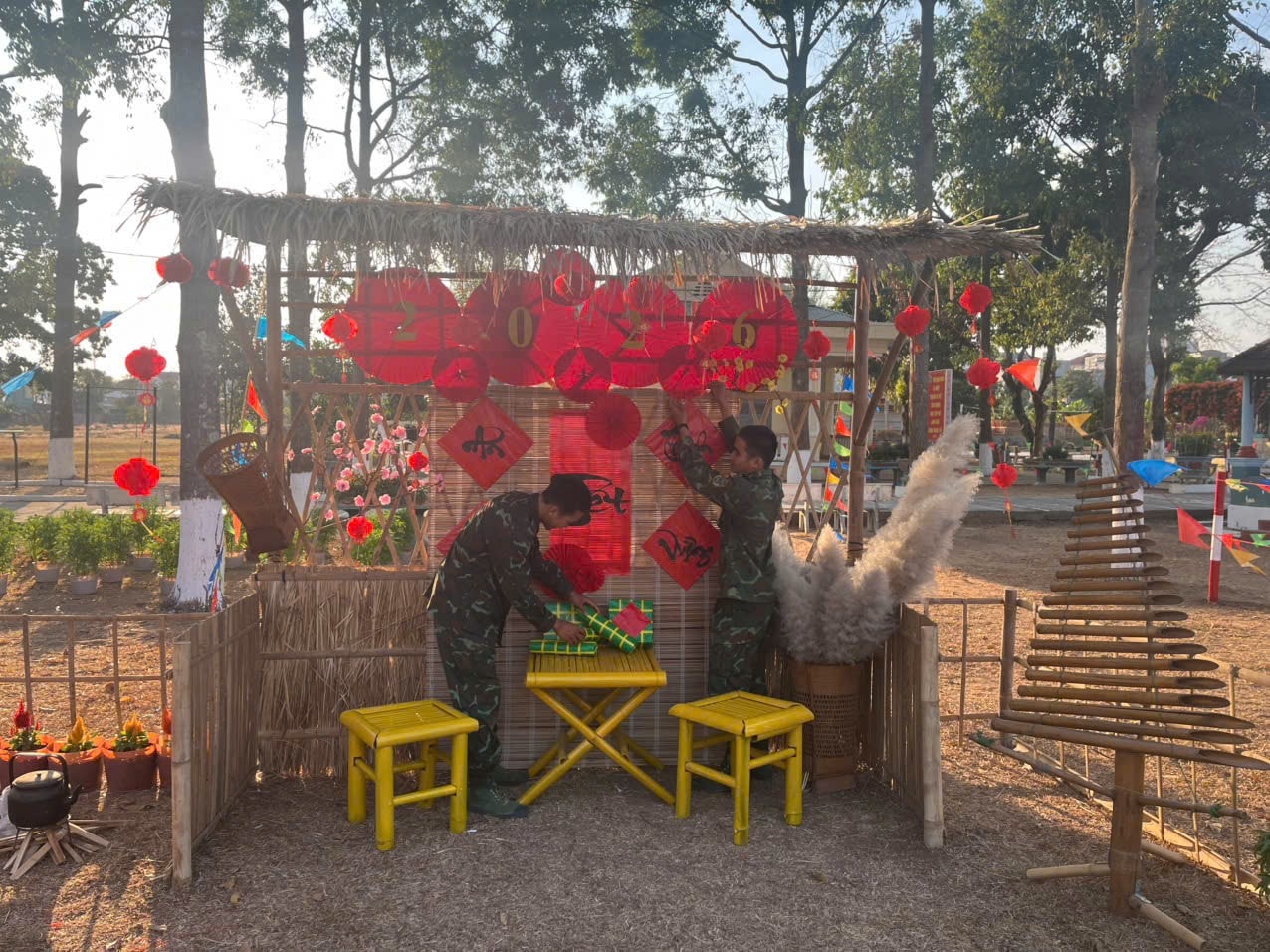 Những cây cảnh được cắt tỉa, tạo hình linh vật; những cây mai, cây đào được trang trí bắt mắt; các khu tổ chức trò chơi, đón Giao thừa được chuẩn bị bài bản. Đặc biệt, với đặc thù chiến sĩ người dân tộc thiểu số chiếm đa số, các đơn vị đều dựng cây nêu, tạo cảm giác cho chiến sĩ như đang sống ở làng.