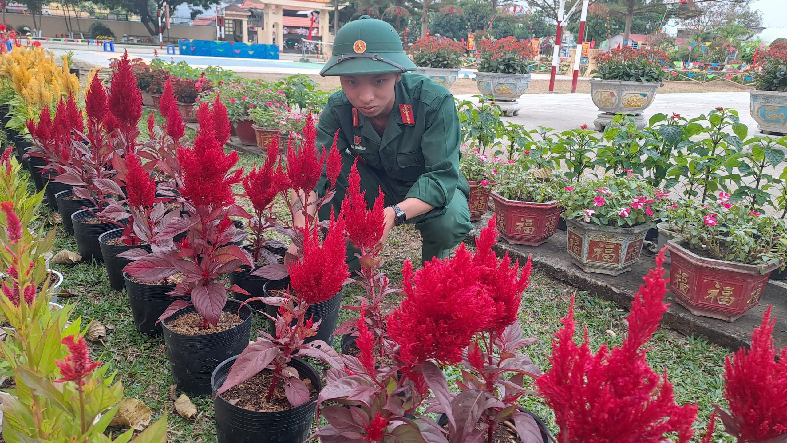 Cán bộ chiến sĩ Sư đoàn 10 chăm sóc cây hoa đón Tết Bính Ngọ 2026