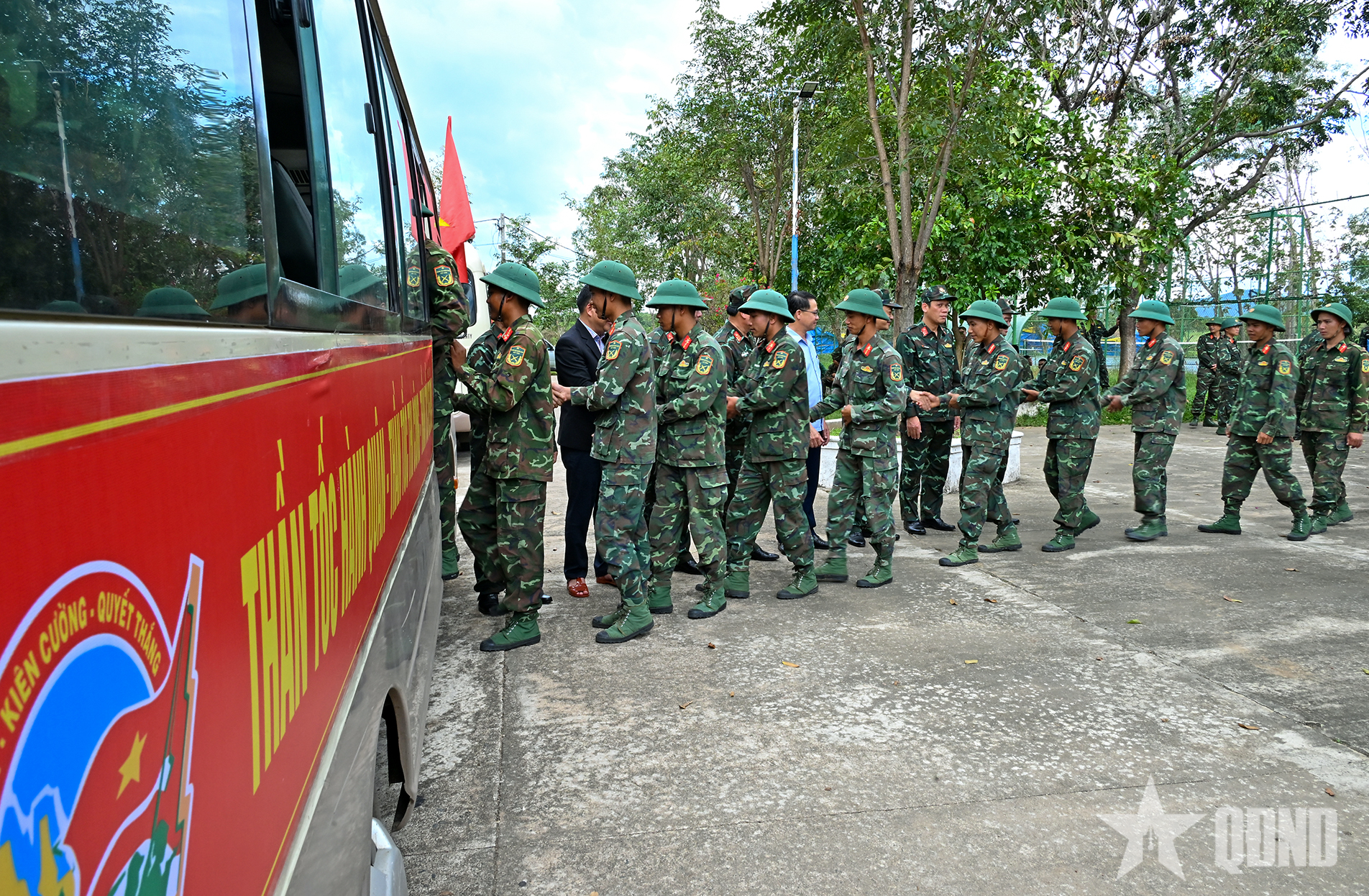 Lãnh đạo đơn vị và địa phương động viên cán bộ, chiến sĩ lên đường thực hiện nhiệm vụ giúp dân.