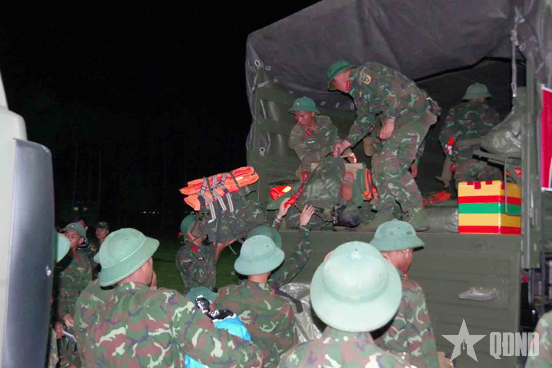 202 cán bộ, chiến sĩ; 10 xe ô tô; nhiều tàu, xuồng, ca nô; hơn 300 áo phao; trên 100 phao cứu sinh; cưa tay, xẻng, dao tông… tất cả tạo thành một lực lượng hỗ trợ quy mô lớn. Trong màn mưa dày đặc, đoàn xe nối đuôi nhau, đèn pha quét sáng những cung đường dẫn về vùng tâm lũ.